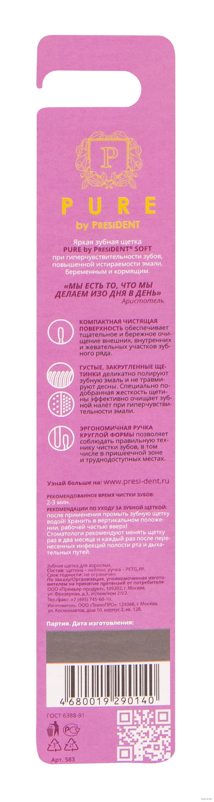 После применения промыть зубную щётку водой. Хранить в вертикальном положении, рабочей частью вверх.Состав
