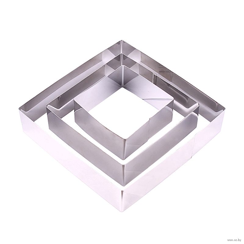 Форма для торта из нержавеющей стали в виде квадрата. В наборе 3 штуки.