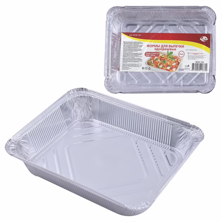 Большие одноразовые формы подойдут для запекания хлебобулочных изделий, мясных блюд, приготовления запеканок, бисквитов, омлетов, заливных. Формы изготовлены из алюминия, этот материал равномерно нагревается, имеет хорошую теплопроводность, не разрушается при воздействии холода. Формочки могут подвергаться нагреванию до 280°С и заморозке до – 40°С. Выпекать можно в обычной духовке и в микроволновых печах. Пища, приготовленная в алюминиевых формах, отличается сочностью, привлекательным внешним видом, лучше сохраняет вкусовые качества. Материал не впитывает жир и влагу, поэтому блюда получаются сочными.