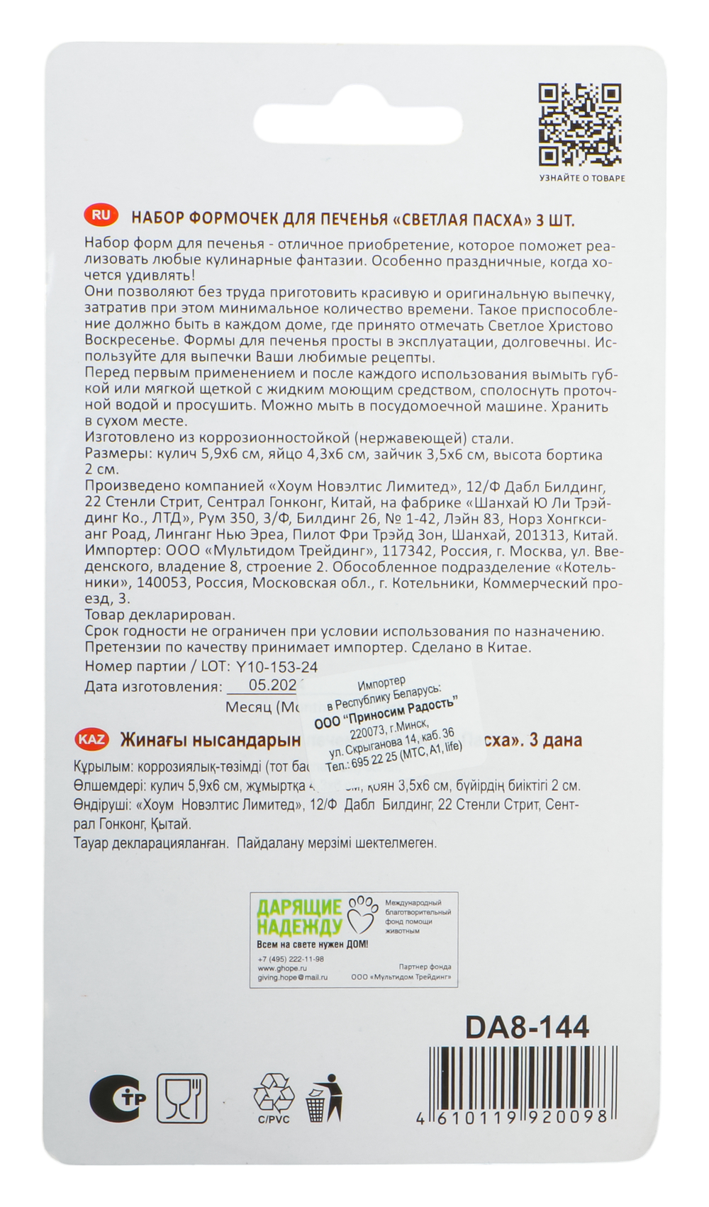 | Импортер | ООО «Приносим радость», 220073, г. Минск, ул. Скрыганова, д. 14, каб. 36. |