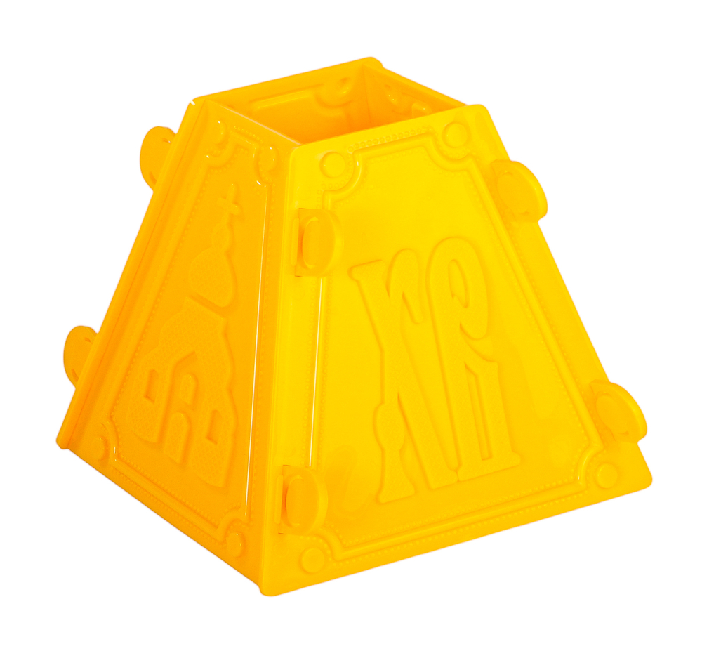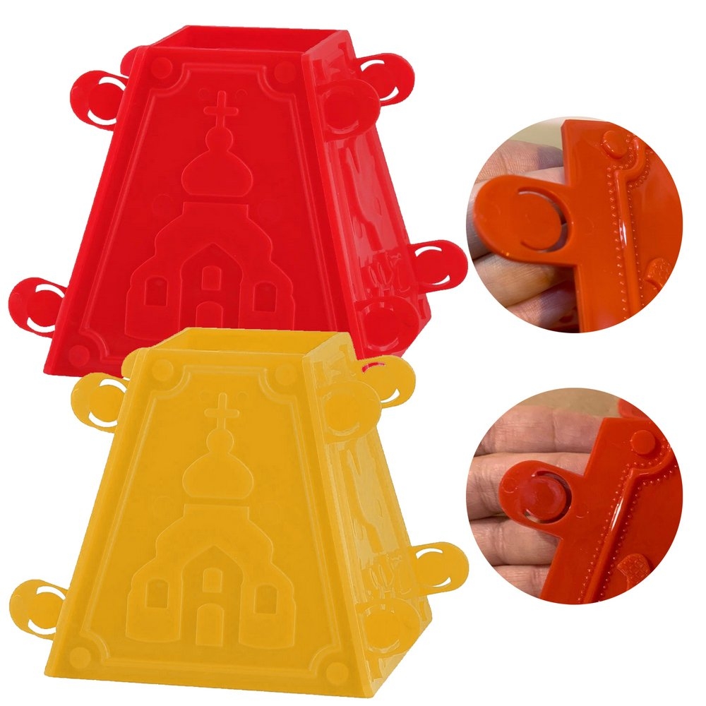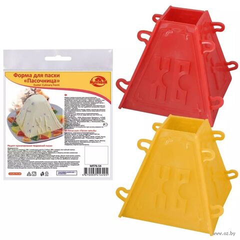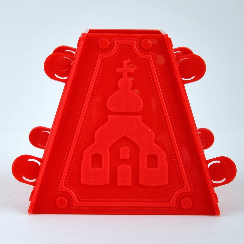 Четырехгранная форма с рельефными изображениями состоит из деталей, которые плотно скрепляются между собой. За счет скрепления творожная масса не вытекает, а грани получаются четкими и ровными.