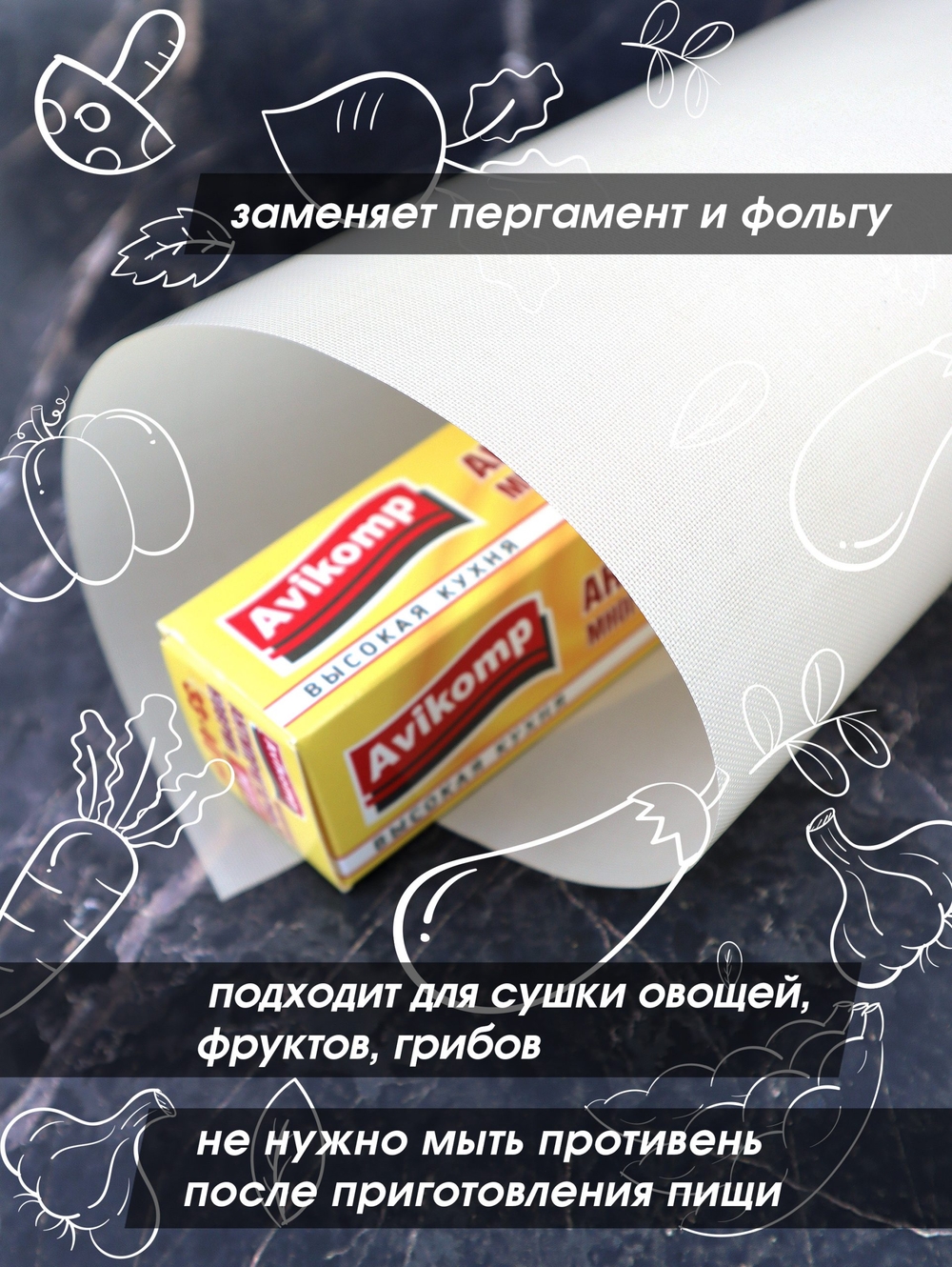 Коврик антипригарный с уникальным покрытием "Potef" предназначен для приготовления выпечки, пиццы, запекания мяса и рыбы без применения масел и жиров, также подходит для сушки яблок и грибов.