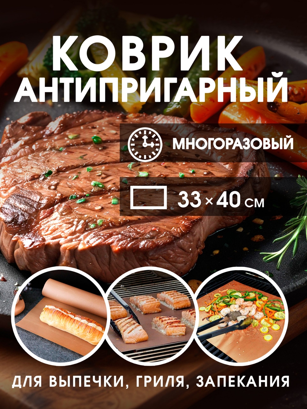 Основные достоинства антипригарного коврика: готовит без смазывания поверхности маслом; можно использовать с любой стороны; обеспечивает хорошую пропекаемость изделий; долговечен, выдерживает более 1000 циклов нагрева.