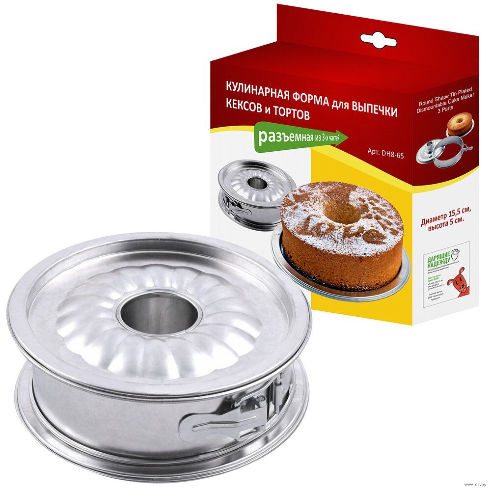 Универсальная форма для выпечки позволяет выпекать кексы, торты и другие кондитерские изделия. Форма состоит из трёх частей: дна, стенки и части для приготовления кексов с отверстием. Съёмное дно и раздвижной механизм позволяют вынимать готовую выпечку без нарушения целостности. Чтобы избежать пригорания коржей, используйте бумагу для выпечки.