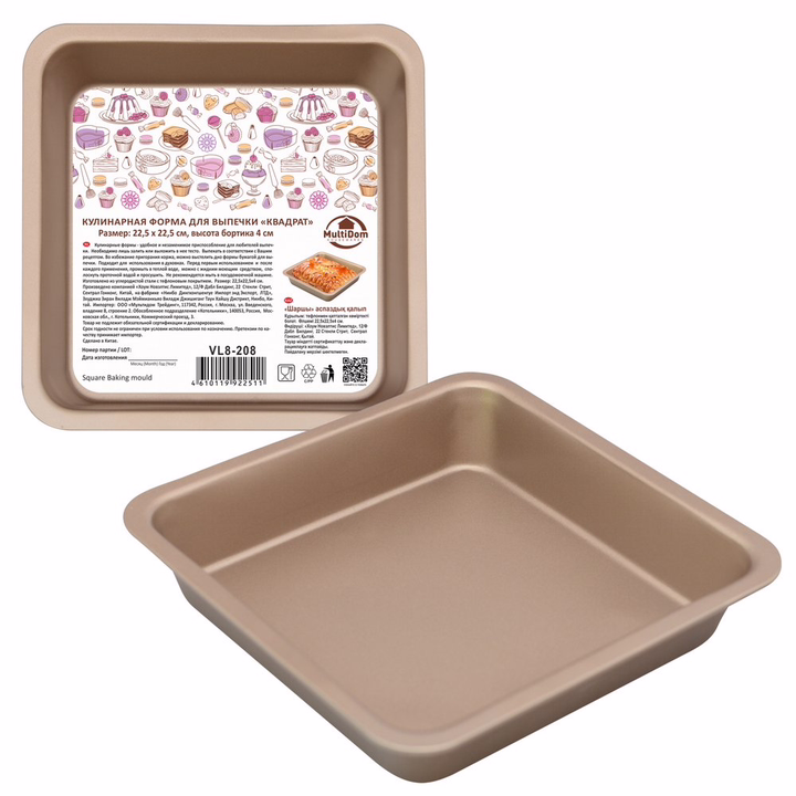 Форма для выпечки металлическая с антипригарным покрытием, квадратная пригодится каждой хозяйке и профессиональному повару, которые привыкли готовить быстро и вкусно. Кулинарные формы – удобное и незаменимое приспособление для любителей выпечки и запекания различных блюд, таких как мясо, рыба, овощи, пироги. Разместите продукты на предварительно смазанную форму, пергамент или фольгу и выпекайте в соответствии с рецептом. Достоинства формы для выпечки: материал – углеродистая сталь – отличается особой прочностью и сохраняет все эксплуатационные свойства при температуре до +450 °С. Эффективное теплораспределение ускоряет процесс готовки. Антипригарное покрытие оберегает блюда от пригорания и сокращает расход масла. Поверхность не впитывает запахов и не вступает в реакции с продуктами питания. Форма легко отмывается. При аккуратном использовании изделие прослужит долгие годы. Рекомендуется избегать применения металлических предметов, губок и высокоабразивных моющих средств.