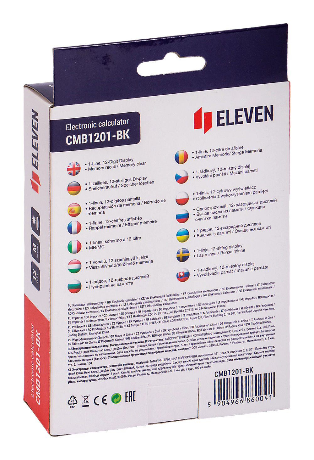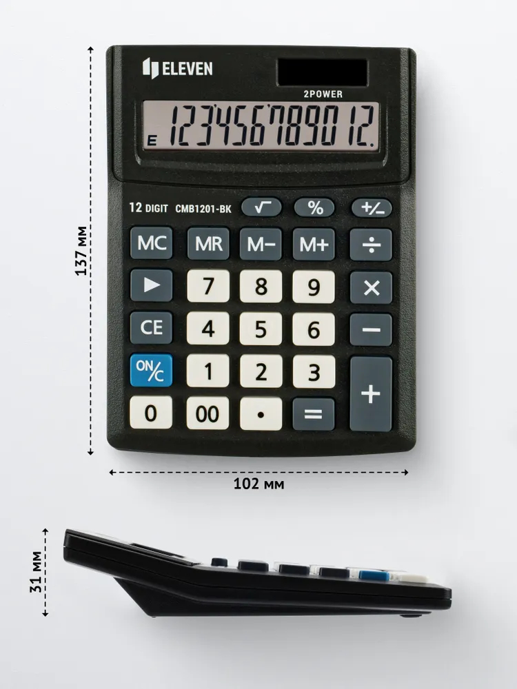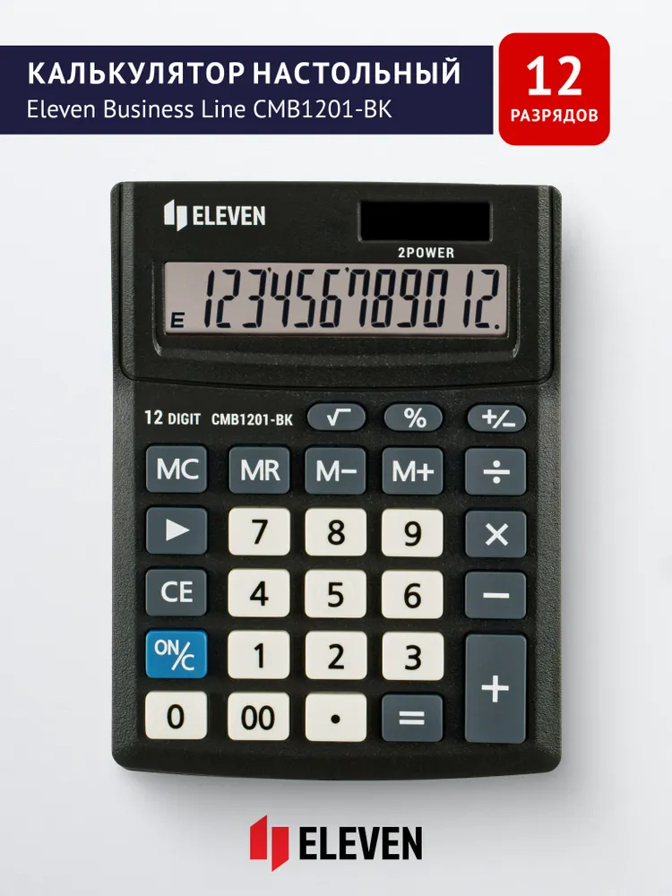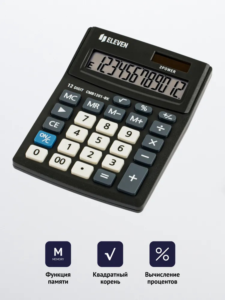 12-ти разрядный настольный калькулятор "Eleven CMB1201-BK" – незаменимый помощник в офисе, школе и дома. Оптимальный набор функций поможет автоматизировать расчёты: вычисление квадратного корня, коррекция последнего введенного значения, кнопка "00", двойная память, расчёт наценки.
