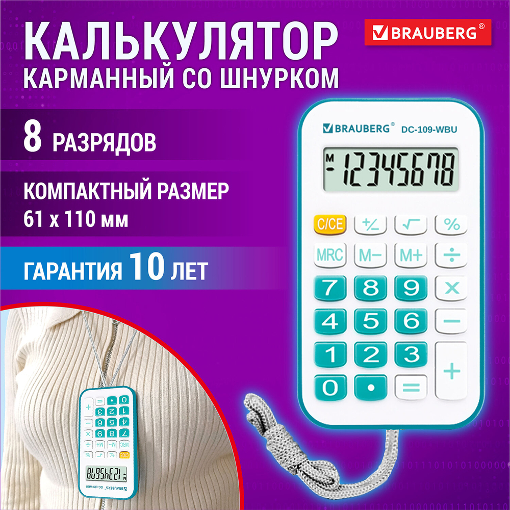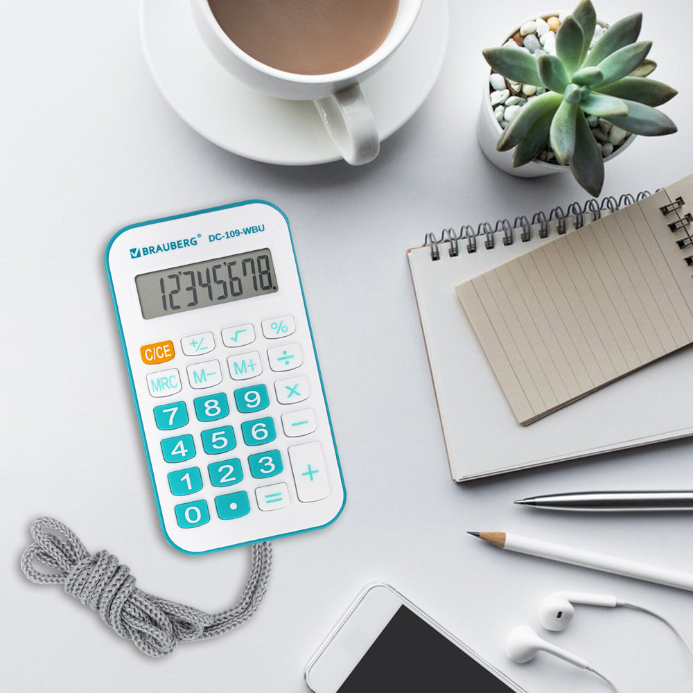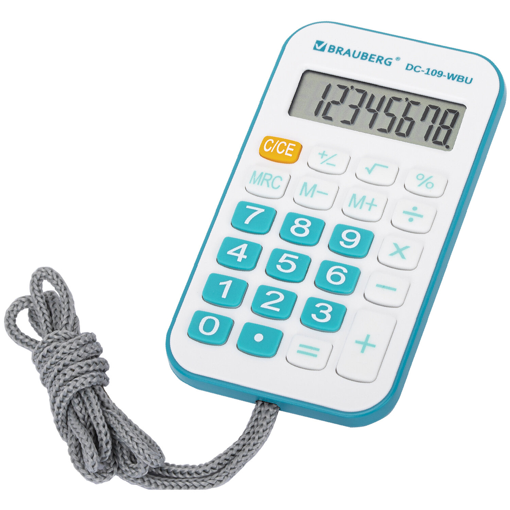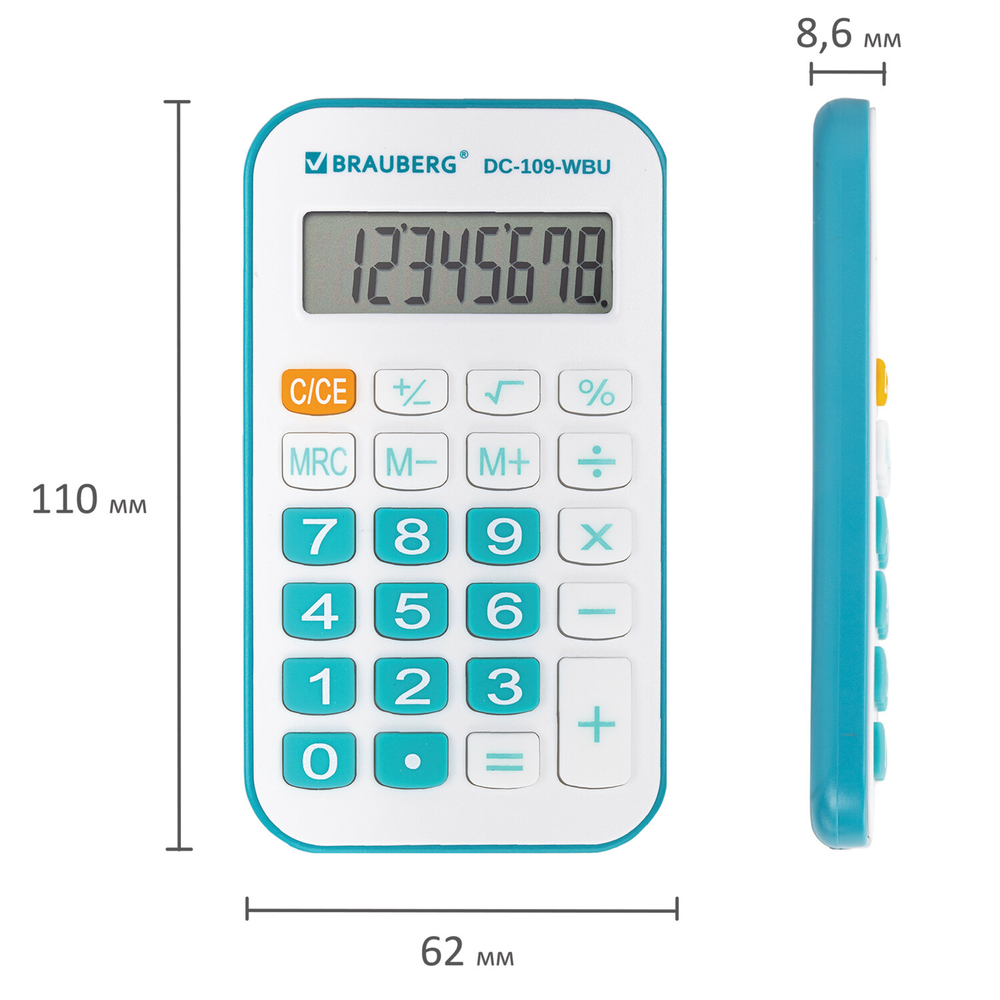 Калькулятор карманный "Brauberg DC-109-WBU" (8 разрядов; голубой)