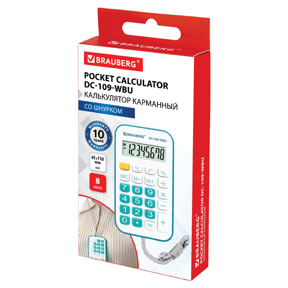 Карманный калькулятор со шнурком DC-109-WBU – компактный и надежный помощник в работе и учебе. Его удобно использовать в офисе, школе и в быту.