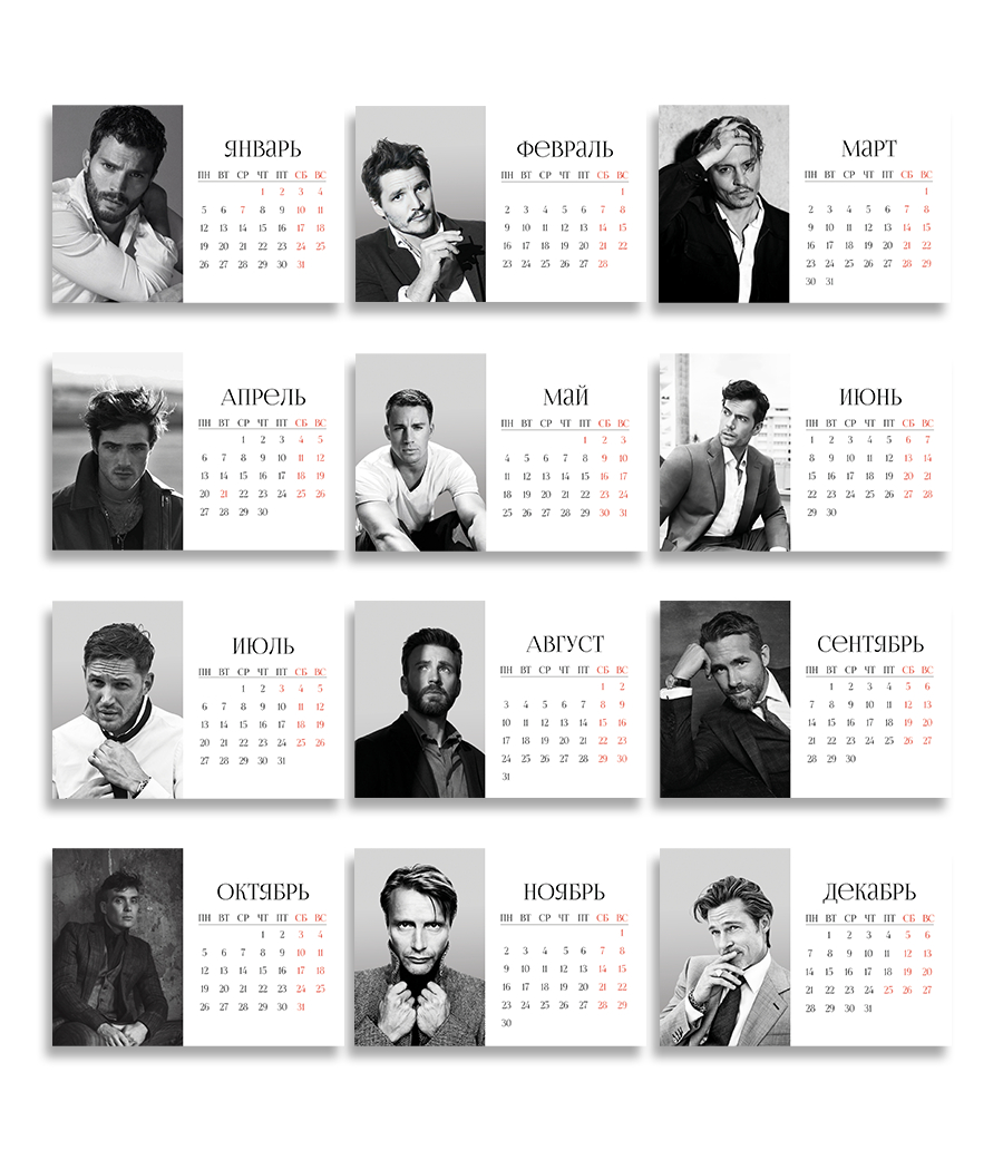 Отличная идея для календаря! 2025 год проведу в компании горячих мужчин Голливуда)))