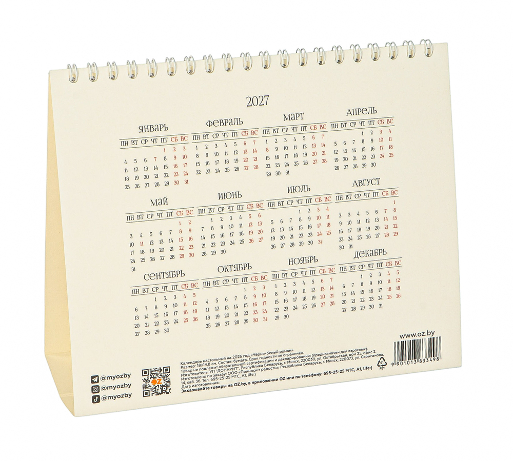 Удобный календарь-домик на спирали на 2026 год с белорусскими праздниками. Листы календарной сетки можно отрывать, а можно и переворачивать.