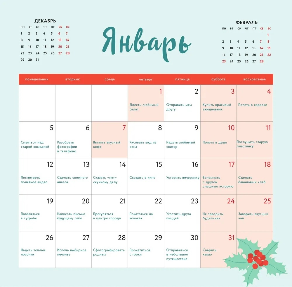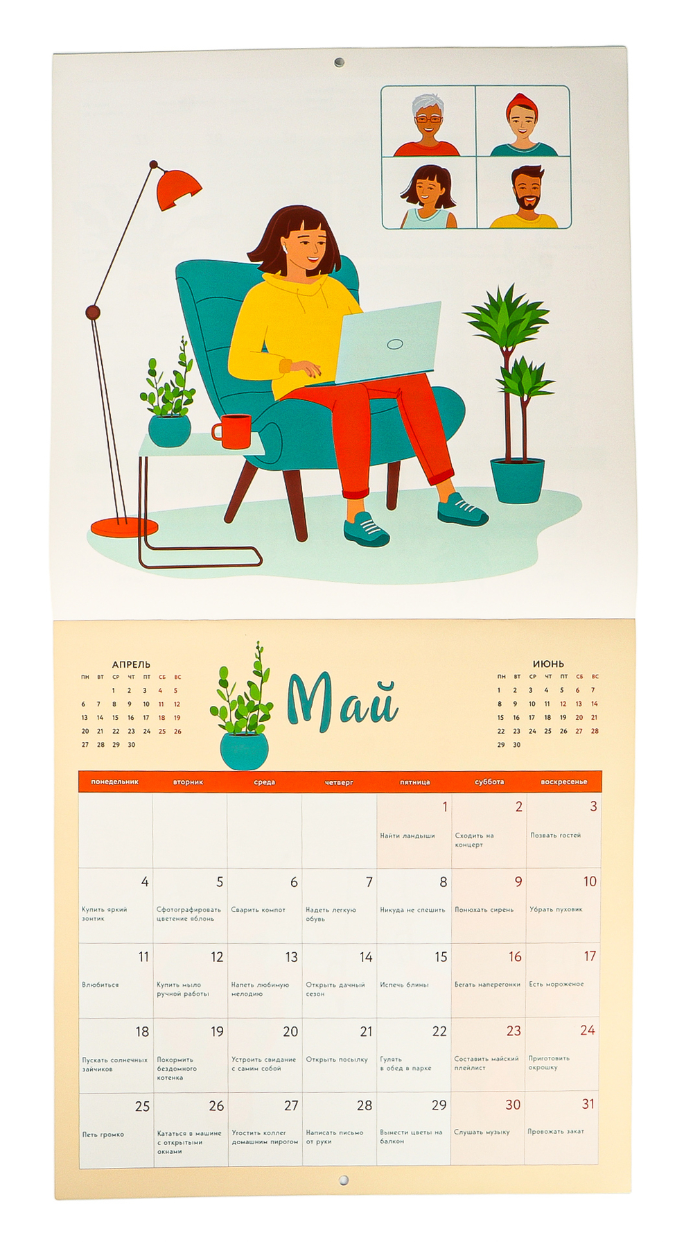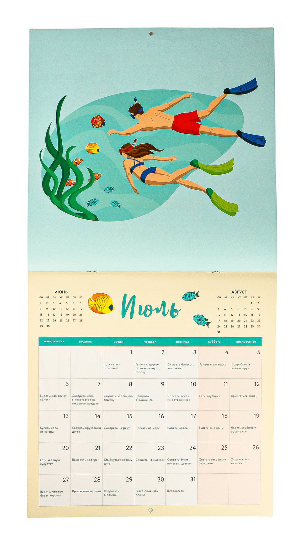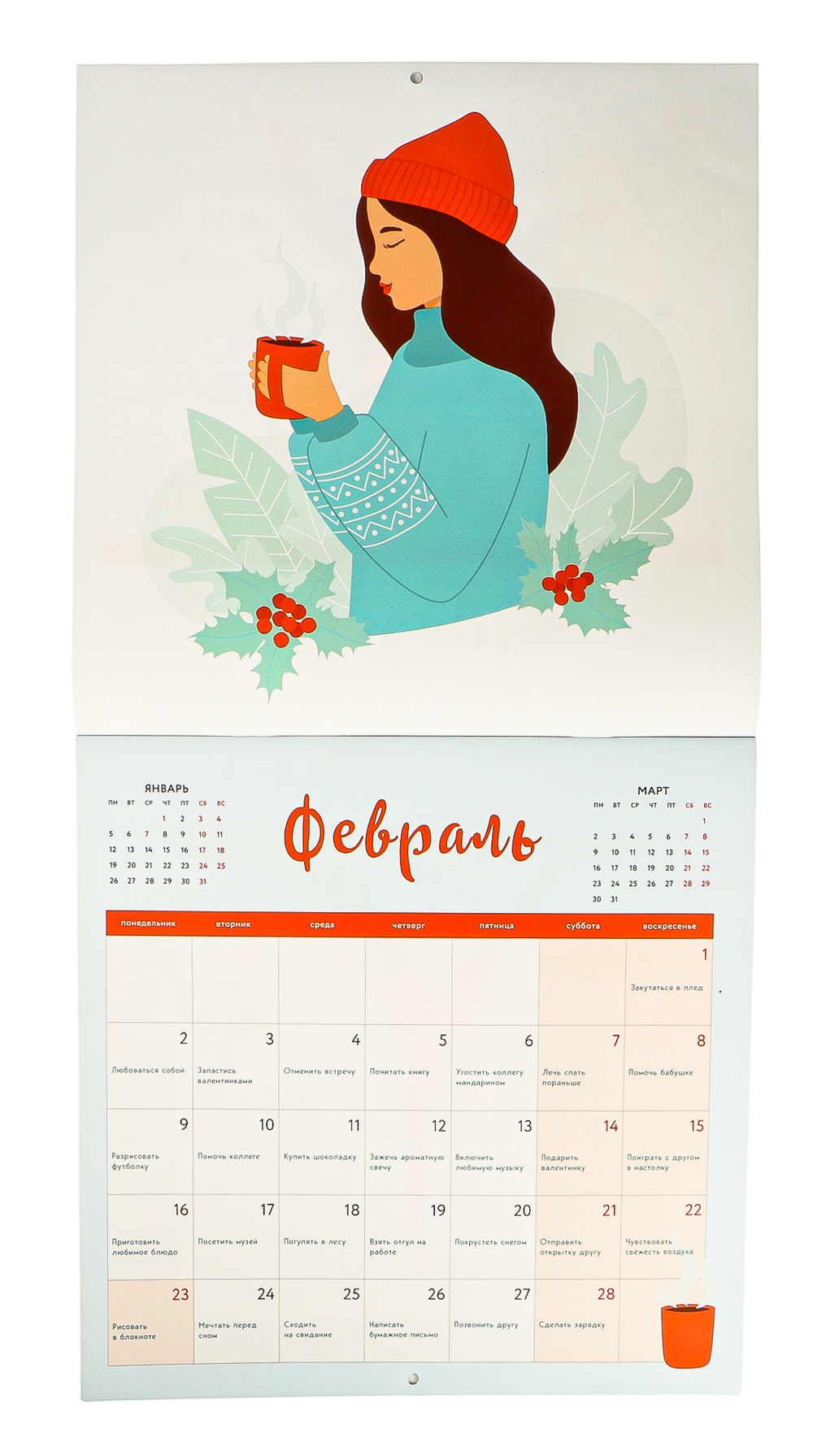 Настенный календарь на 2026 год с яркими иллюстрациями! В каждой ячейке календарной сетки предлагается уникальный повод для счастья: прогулка в парке, встреча с друзьями, букет цветов в подарок себе самой. Идеальный подарок всем, кто мечтает научиться замечать каждый день.