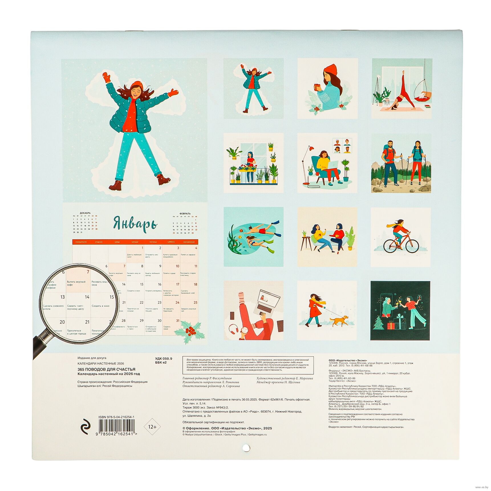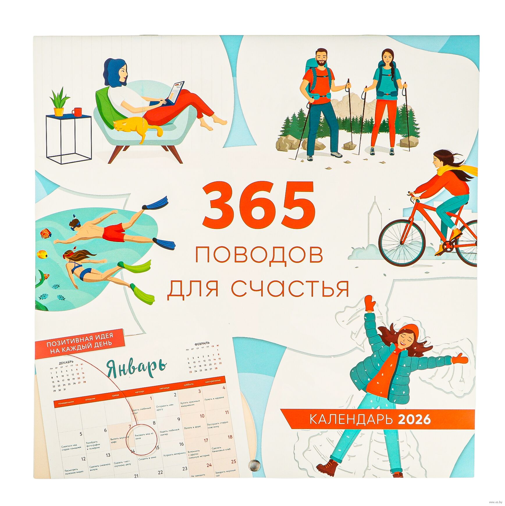 Календарь настенный на 2026 год "365 поводов для счастья" (30х30 см)