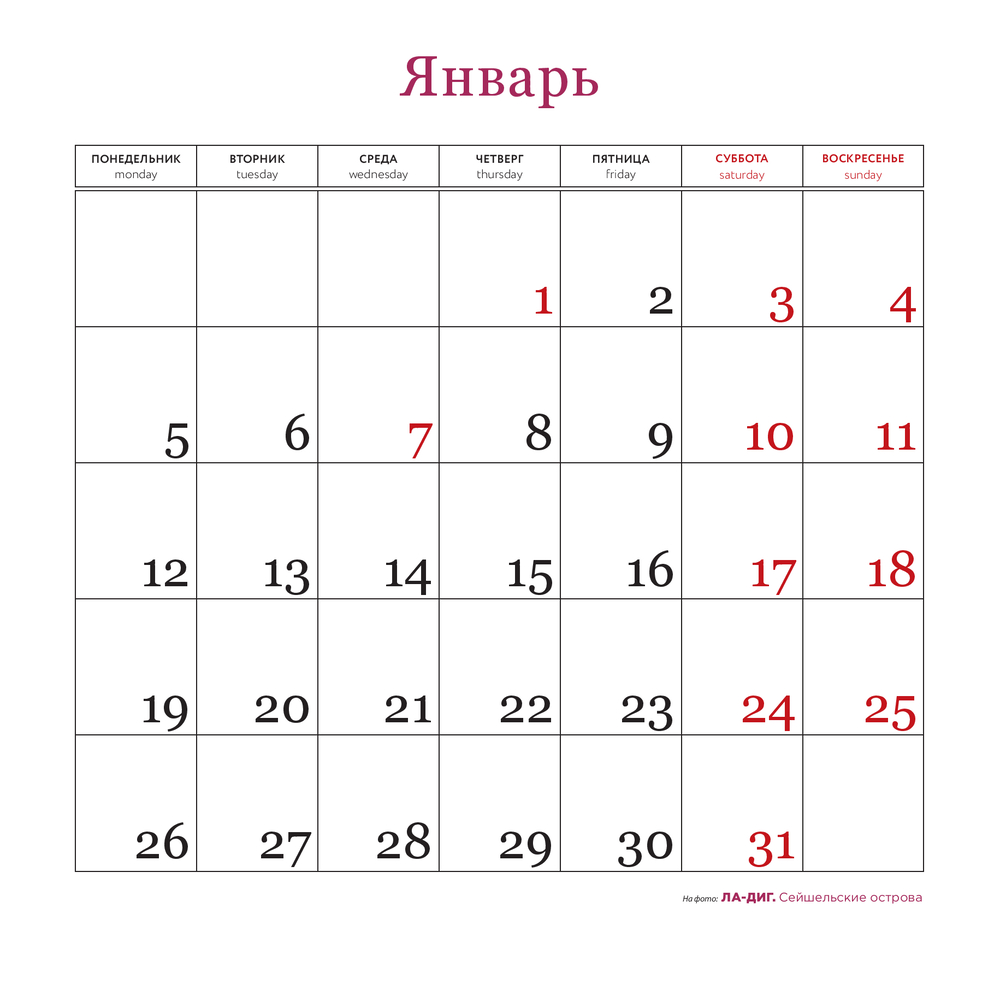 | Календарная сетка | Ежемесячный |