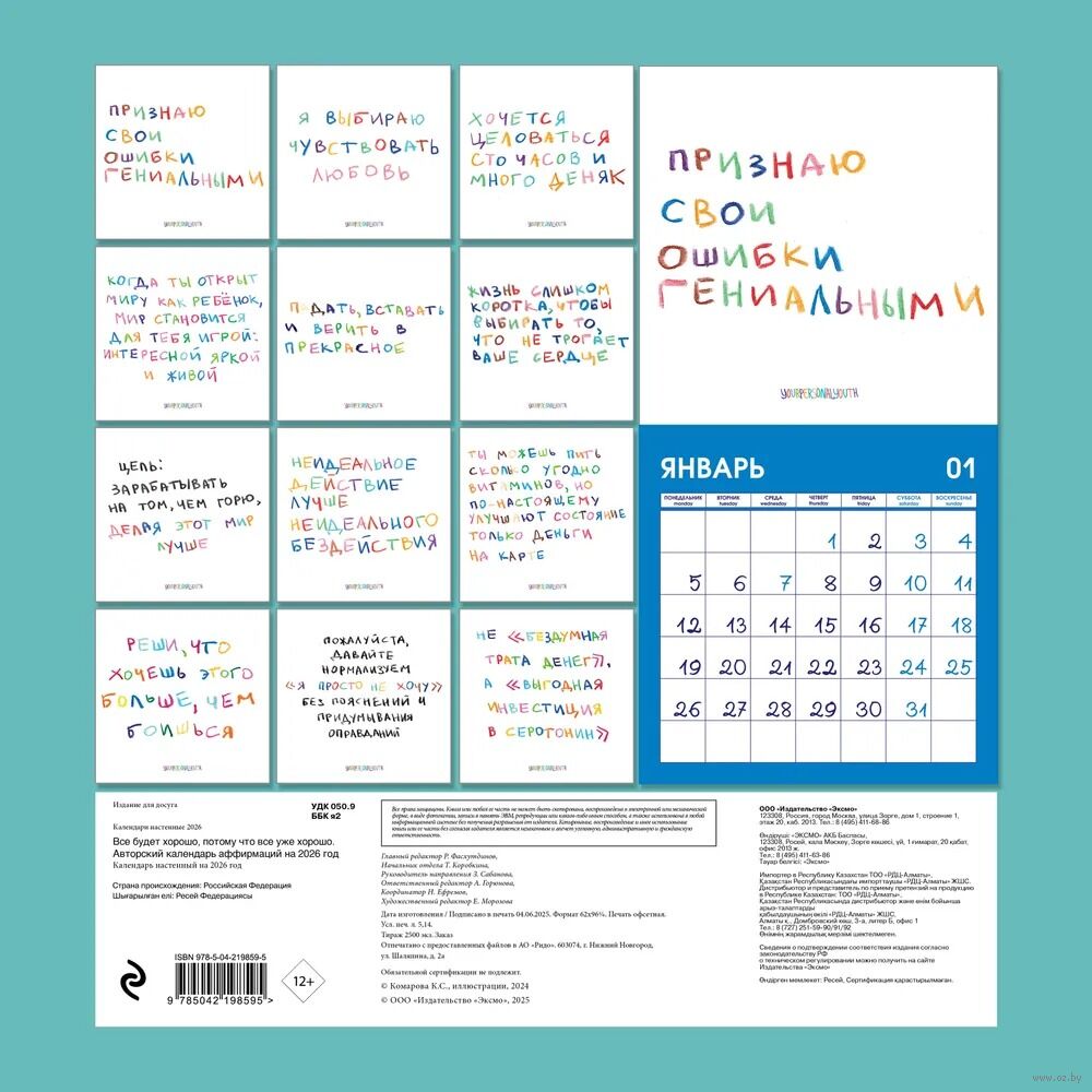 Каждый месяц – новая позитивная установка, которая поможет сохранить радость и уверенность в любые дни. Удобный формат, качественная печать и лаконичный дизайн превращают его в ежедневный источник хорошего настроения.