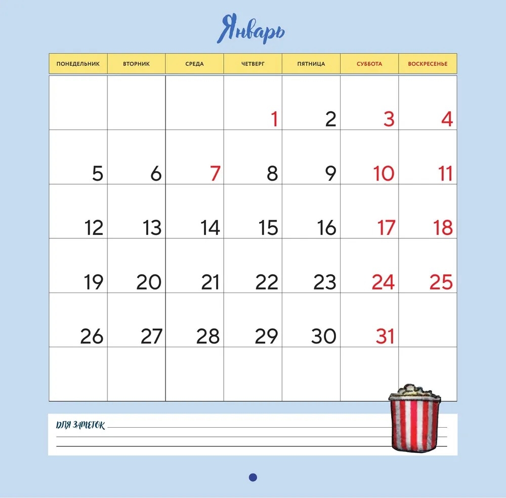 | Календарная сетка | Ежемесячный |