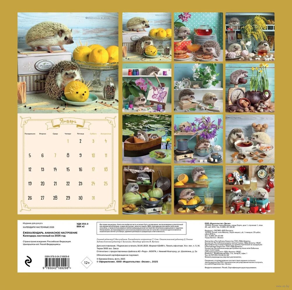 Календарь настенный на 2026 год "Ёжекалендарь. Ананасное настроение" (30х30 см)