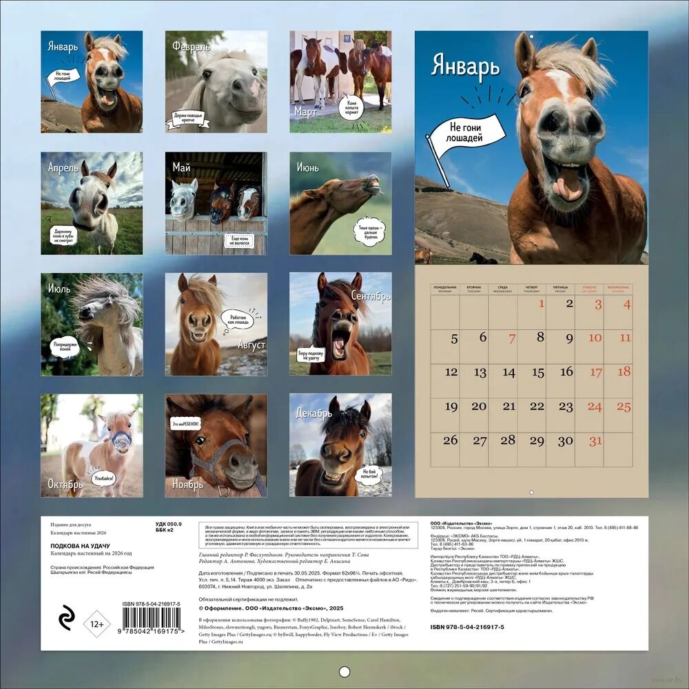 Календарь настенный на 2026 год "Подкова на удачу. 12 забавных символов года" (30х30 см)