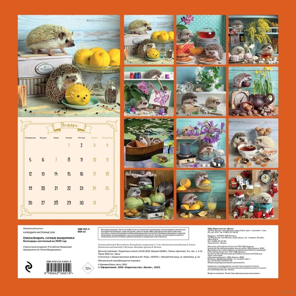 Календарь настенный на 2026 год "Ёжекалендарь. Сочные мандаринки" (30х30 см)