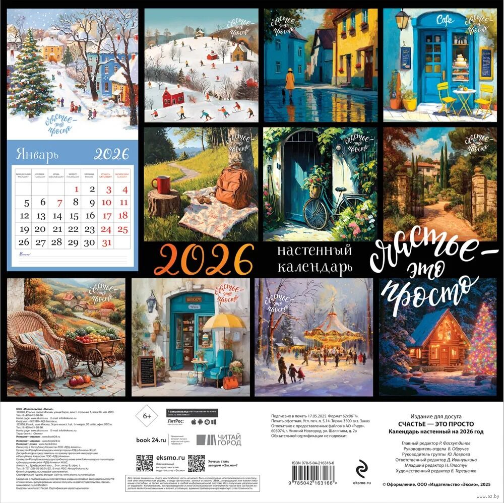 Календарь настенный на 2026 год "Счастье - это просто" (30х30 см)