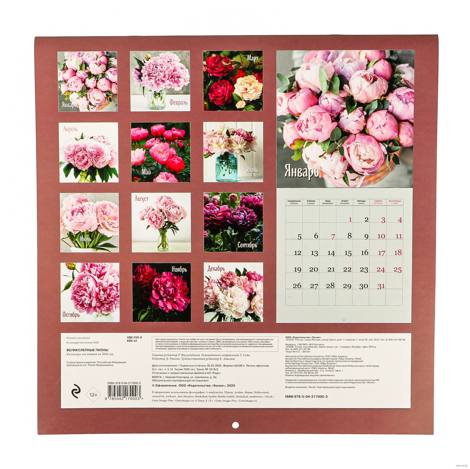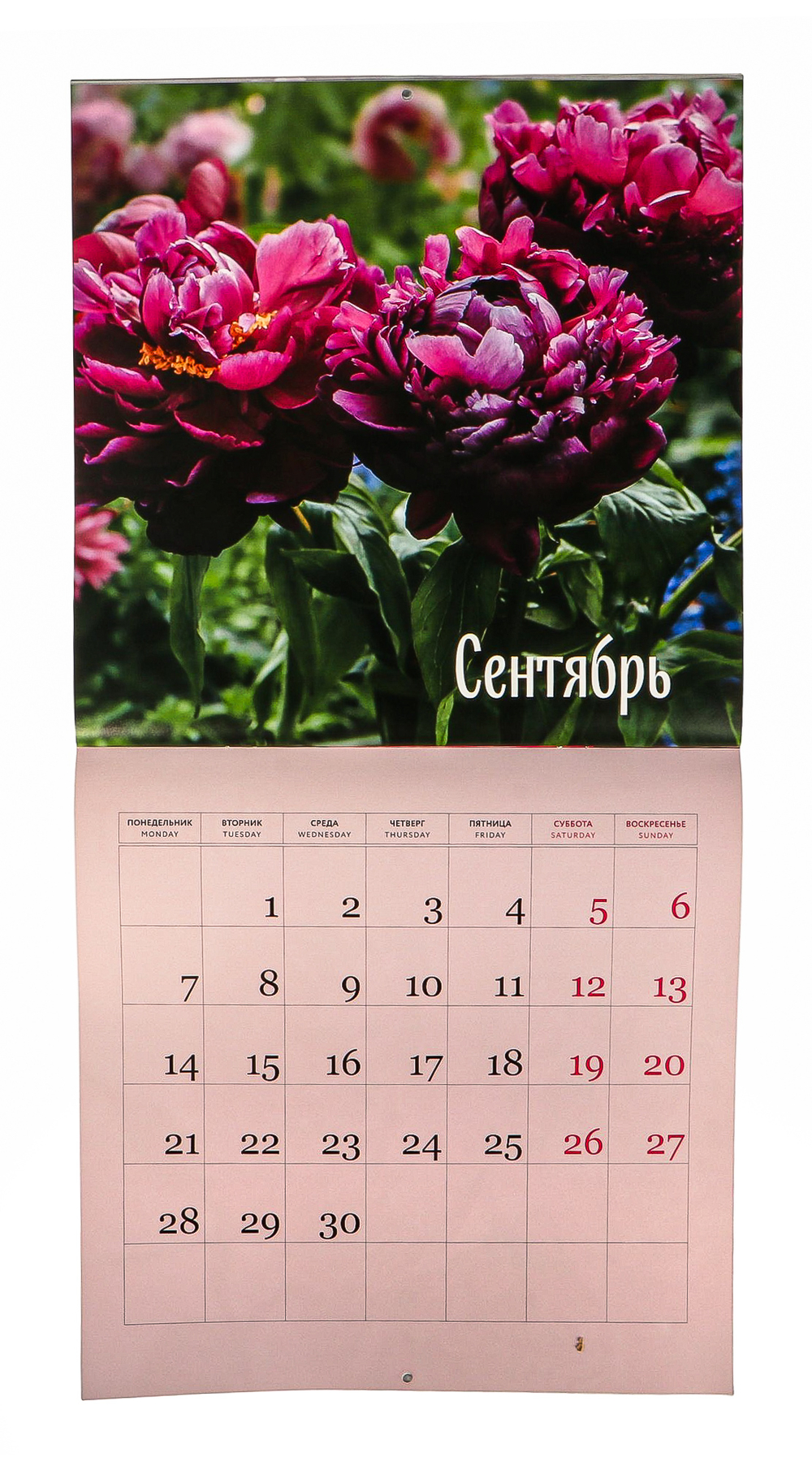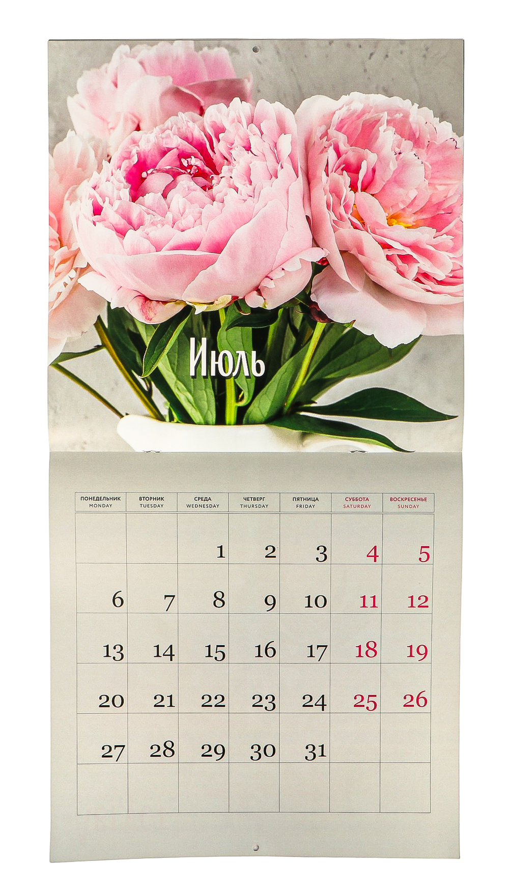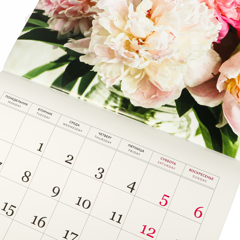 Белые, красные, розовые – великолепные пионы в одном календаре. Каждый месяц представлен оригинальным букетом в соответствии с цветовой гаммой сезона.