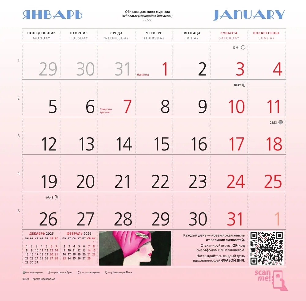 Практичный и эстетичный, этот календарь каждый месяц будет радовать вас. Прекрасные картины органично дополнят любой интерьер и помогут планировать время.
