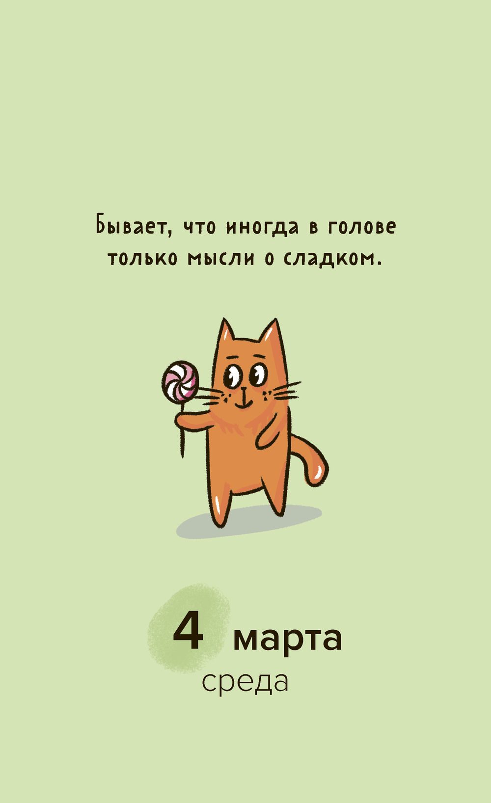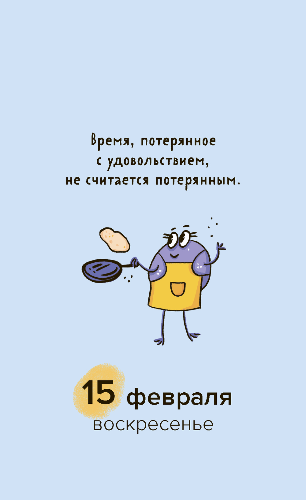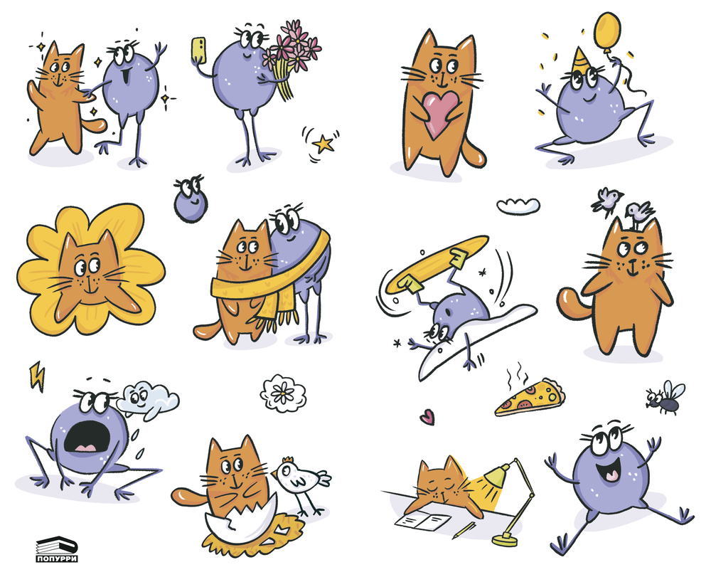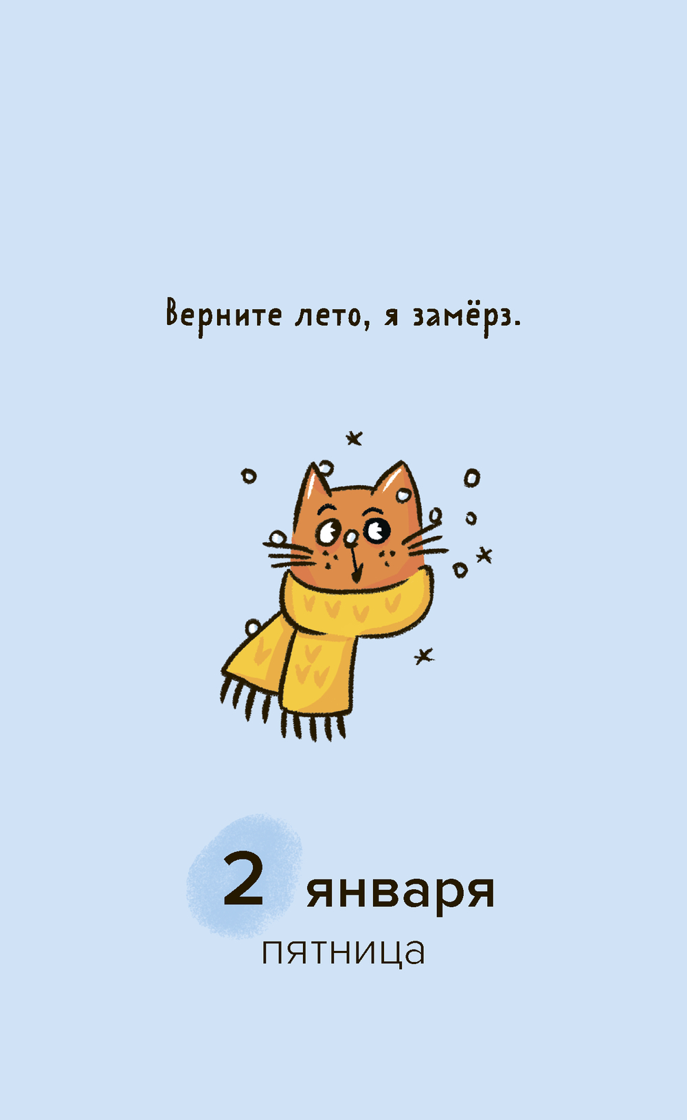 На страницах календаря вас ждут фразы дня – милые, вдохновляющие, иногда шуточные, а также забавные персонажи, созданные художницей Александрой Атлас. В комплекте – универсальные стикеры с этими героями! Украсьте ими сам календарь или добавьте весёлые акценты в свой ежедневник, на ноутбук или чехол телефона.