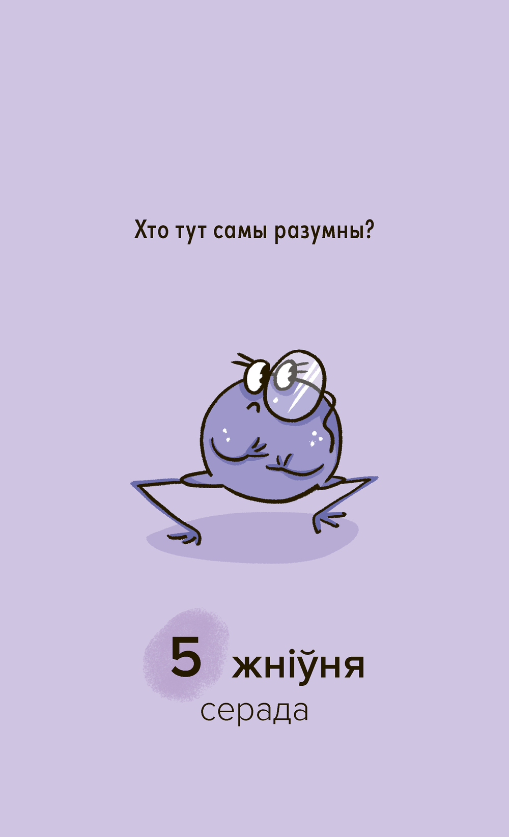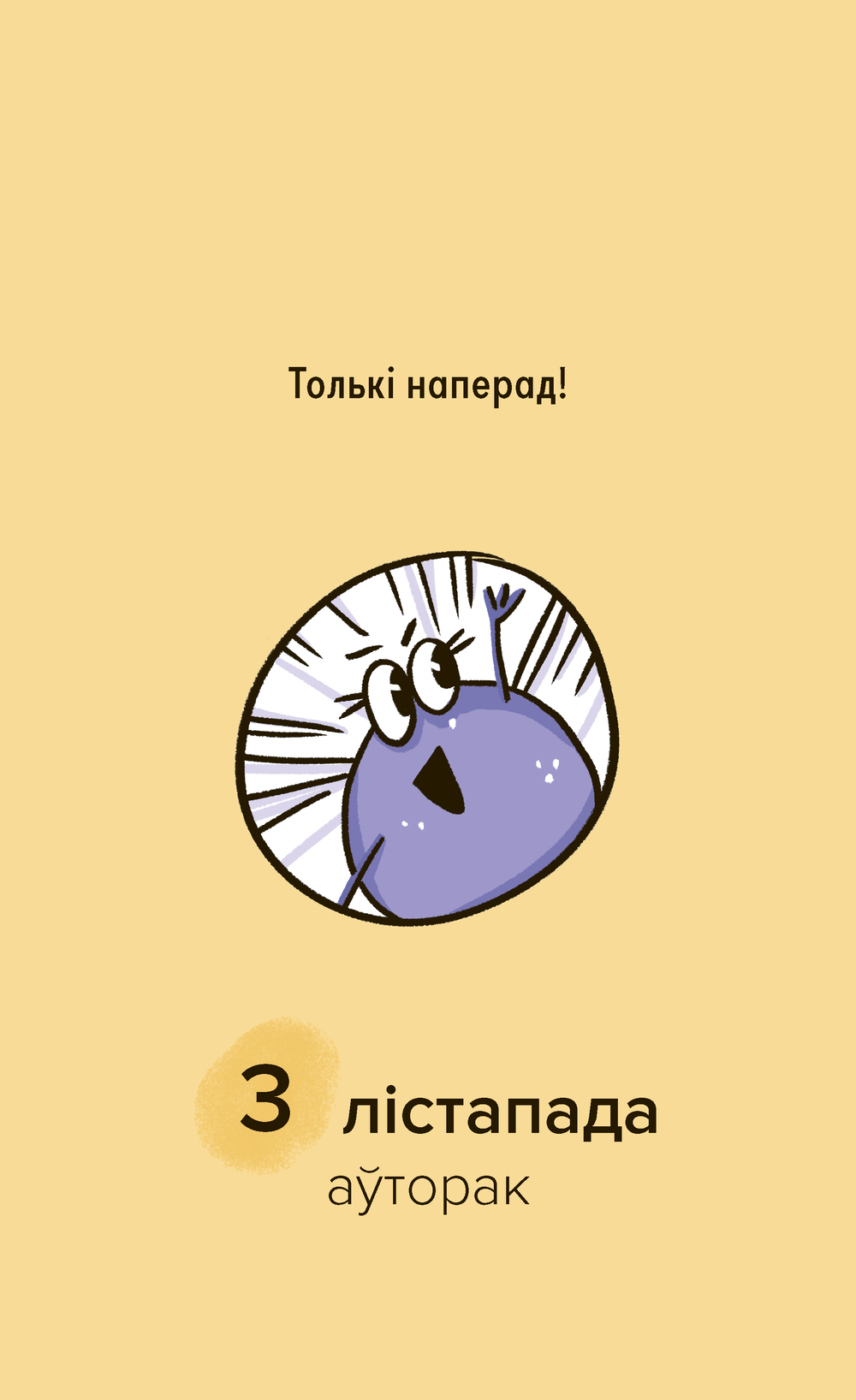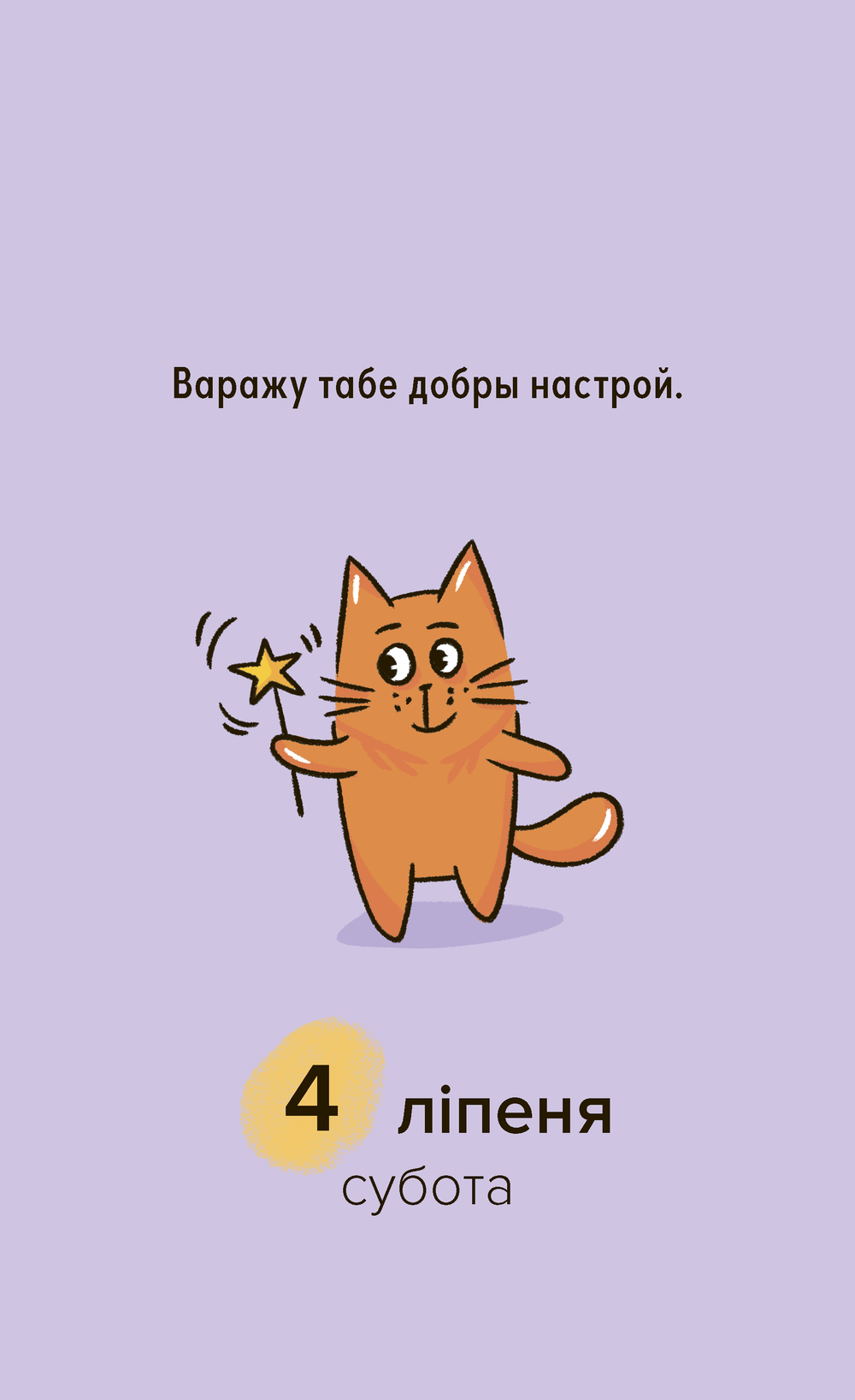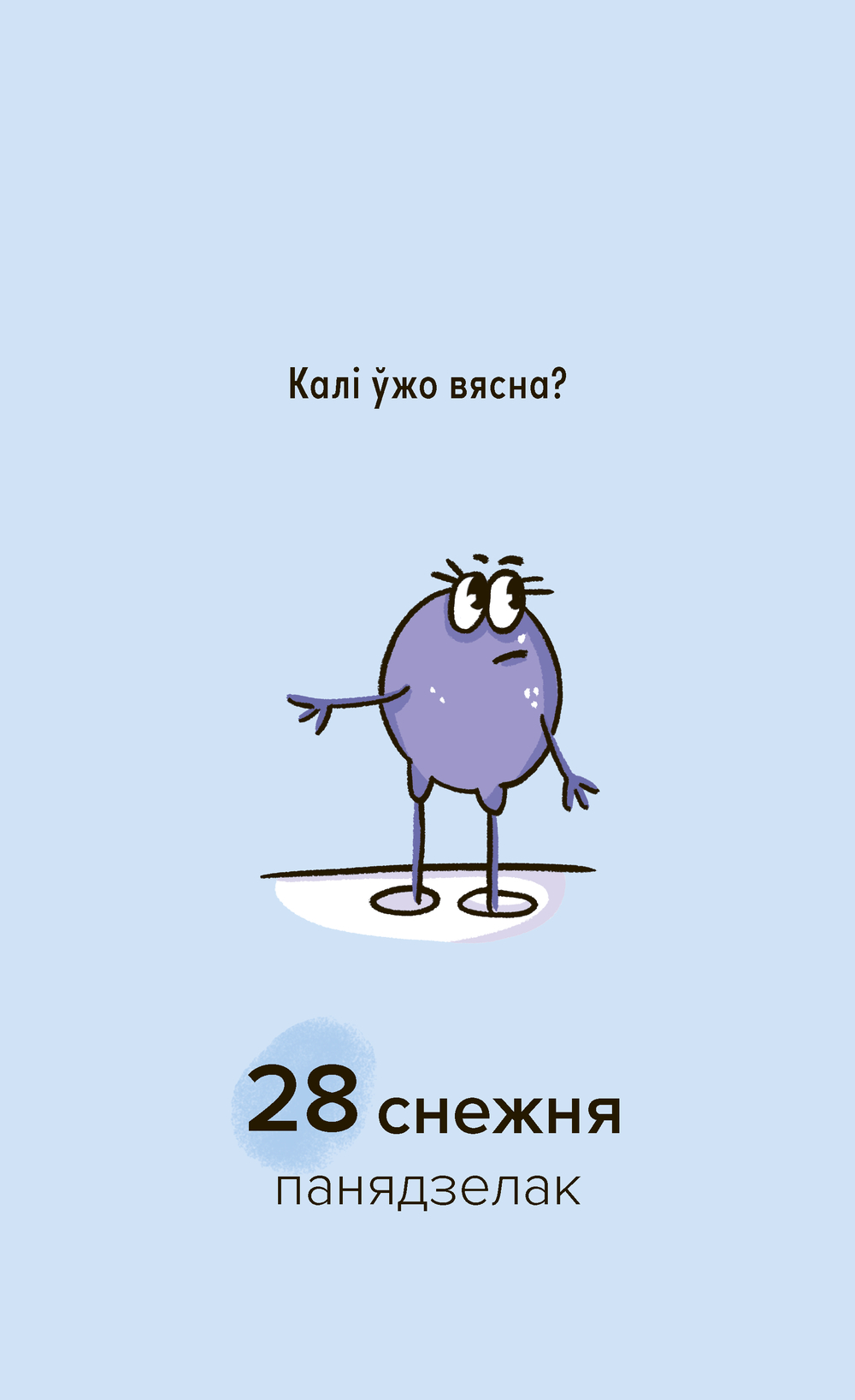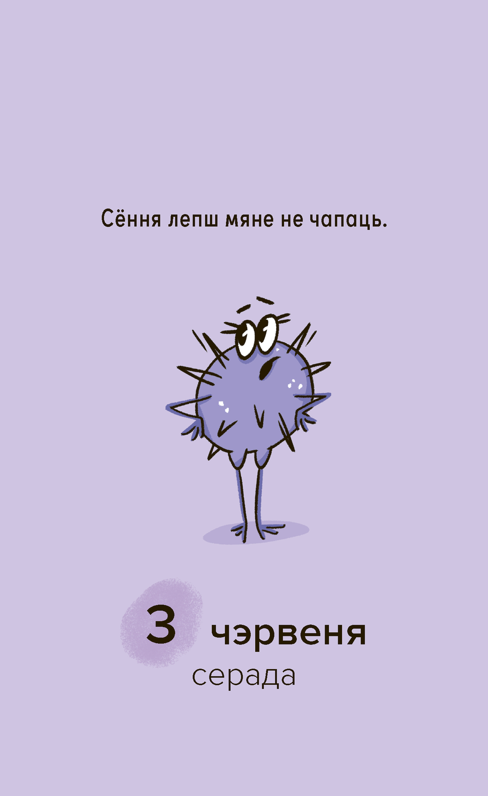 На старонках календара вас чакаюць фразы дня – мілыя, натхняльныя, часам жартоўныя, а таксама пацешныя персанажы, створаныя мастачкай Аляксандрай Атлас. У камплекце – ўніверсальныя стыкеры з гэтымі героямі! Упрыгожце імі сам каляндар або дадайце вясёлыя акцэнты ў свой штодзённік, на ноўтбук ці на чахол тэлефона.