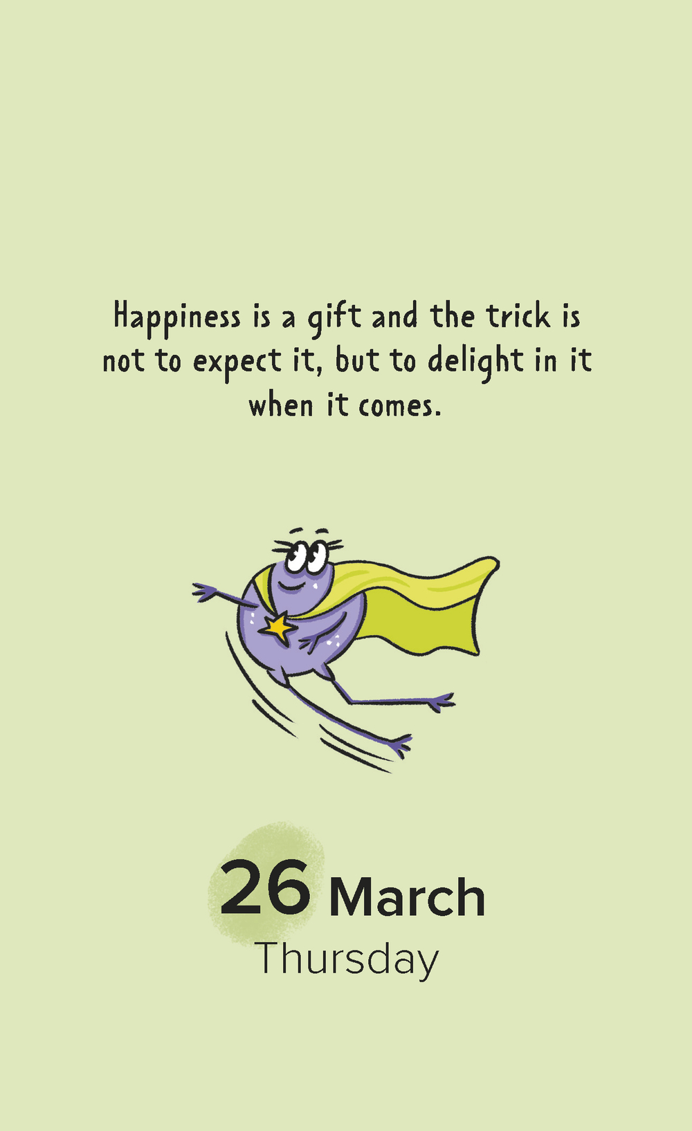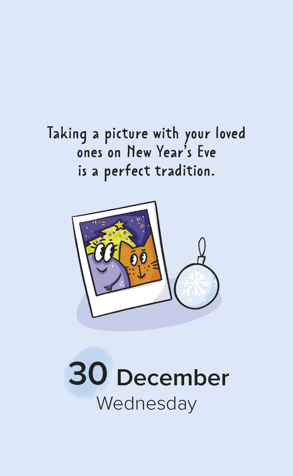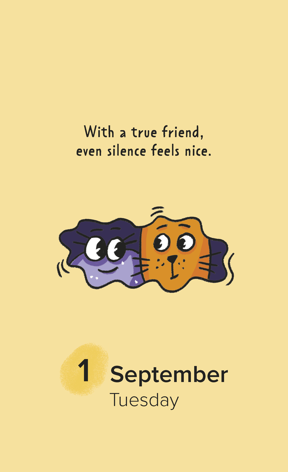 На страницах календаря вас ждут фразы дня – милые, вдохновляющие, иногда шуточные, а также забавные персонажи, созданные художницей Александрой Атлас. В комплекте – универсальные стикеры с этими героями! Украсьте ими сам календарь или добавьте весёлые акценты в свой ежедневник, на ноутбук или чехол телефона.