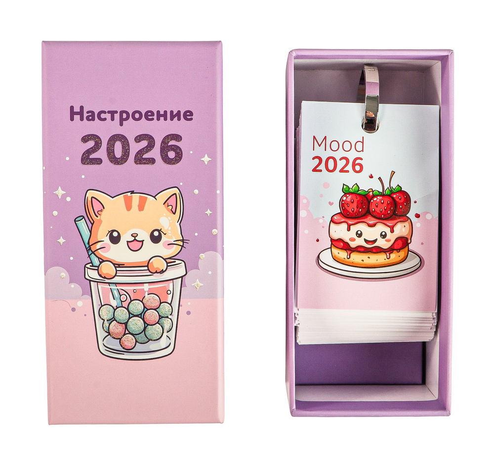 Листы надёжно держатся на кольце, а прочная подарочная упаковка делает этот календарик идеальным подарком.