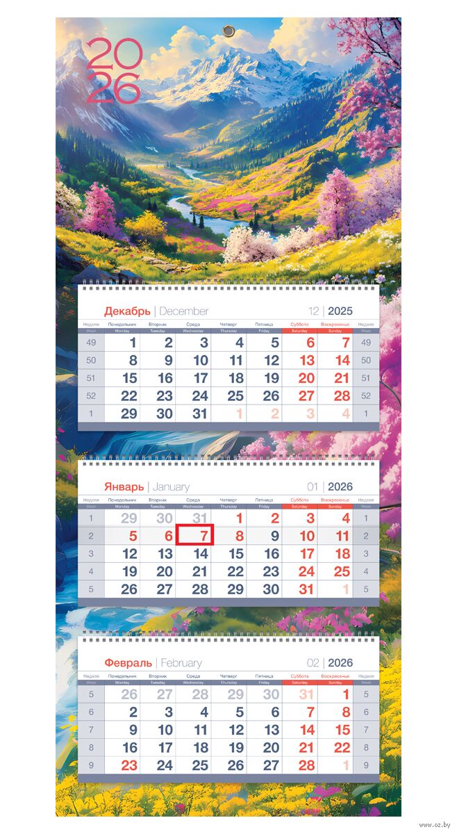Календарь квартальный BG линейки Mini premium "Цветущие горы" на 2026 год – незаменимая вещь в жизни делового человека и отличный помощник для офиса, компактного размера 195х475 мм. Ориентация – вертикальная. 3 календарных блока по 12 листов на 3 гребнях изготовлены из мелованной белой бумаги плотностью 90 г/м2 с печатью в 2 краски. Подложка изготовлена из чистоцеллюлозного мелованного картона 290 г/м2, печать – полноцветная. Есть удобный бегунок-курсор и пикколо для подвески.