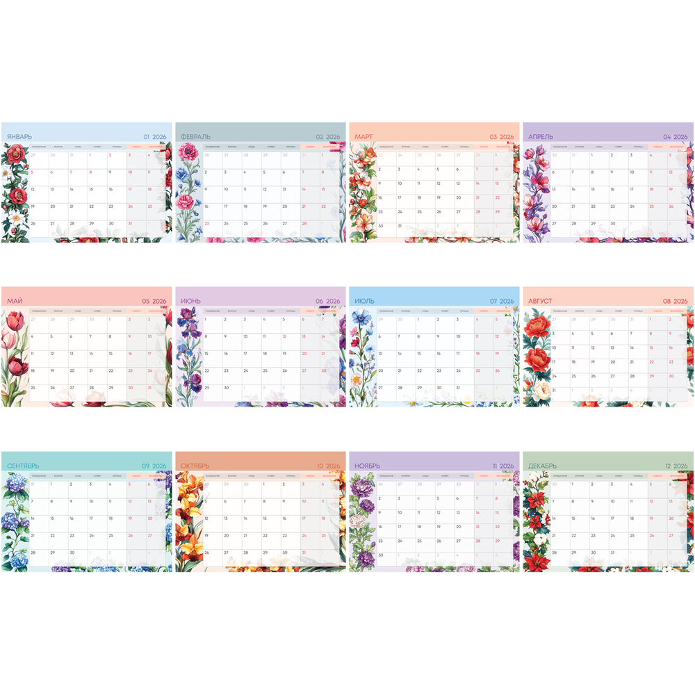 Календарь-планер настенный на 2026 год "Цветы" (29,7х21 см)