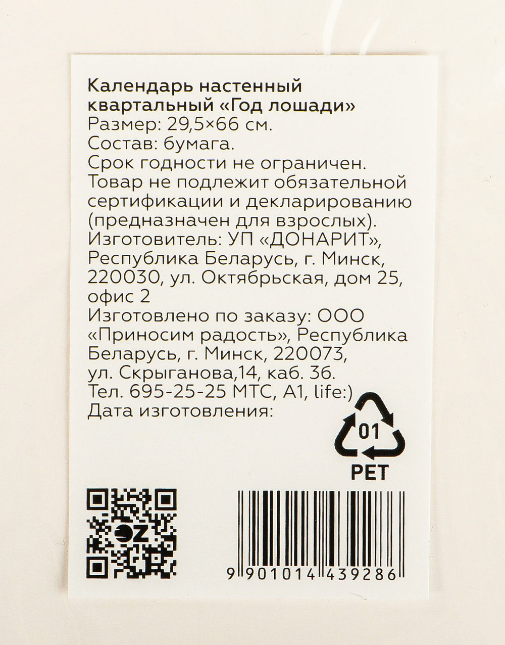 | Изготовитель | ООО «Приносим радость», 220073, г. Минск, ул. Скрыганова, д. 14, каб. 36, Беларусь |