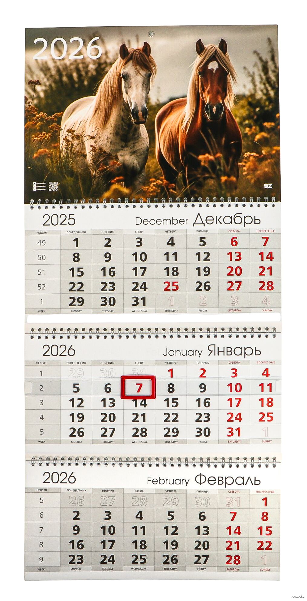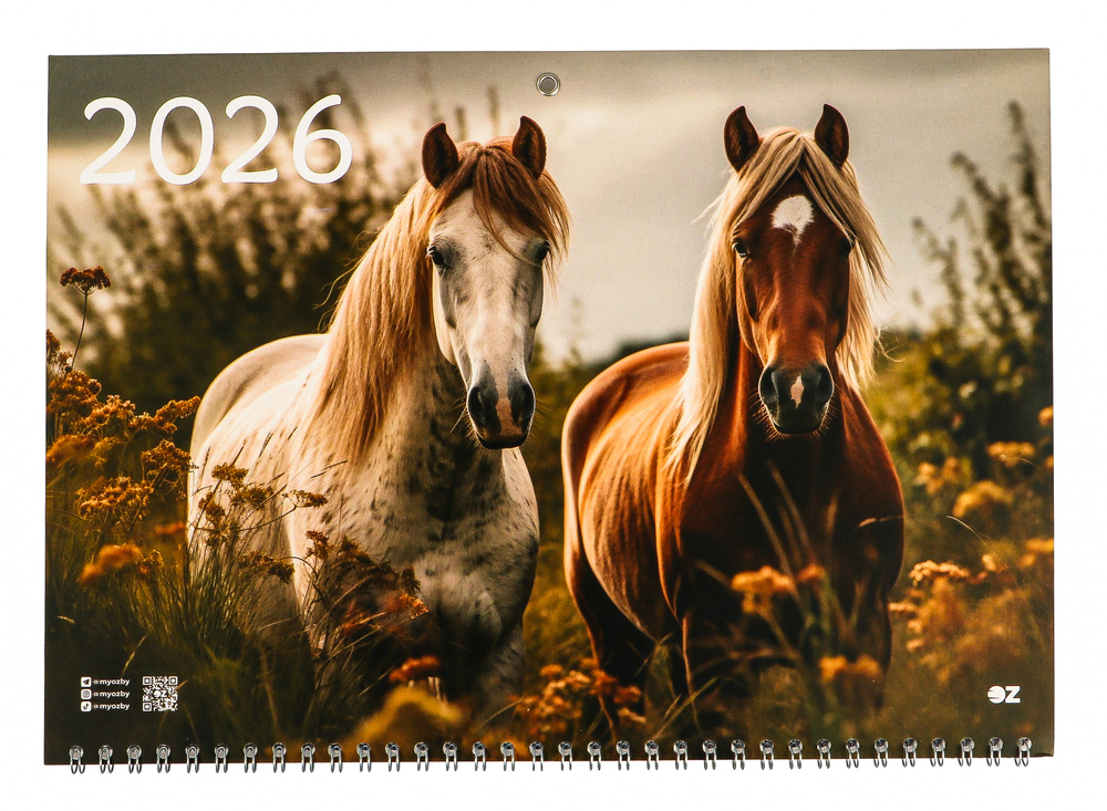 Календарь настенный квартальный "Год лошади" на 2026 год с белорусскими праздниками.