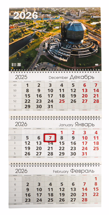 Календарь настенный квартальный "Национальная библиотека" на 2026 год с белорусскими праздниками.
