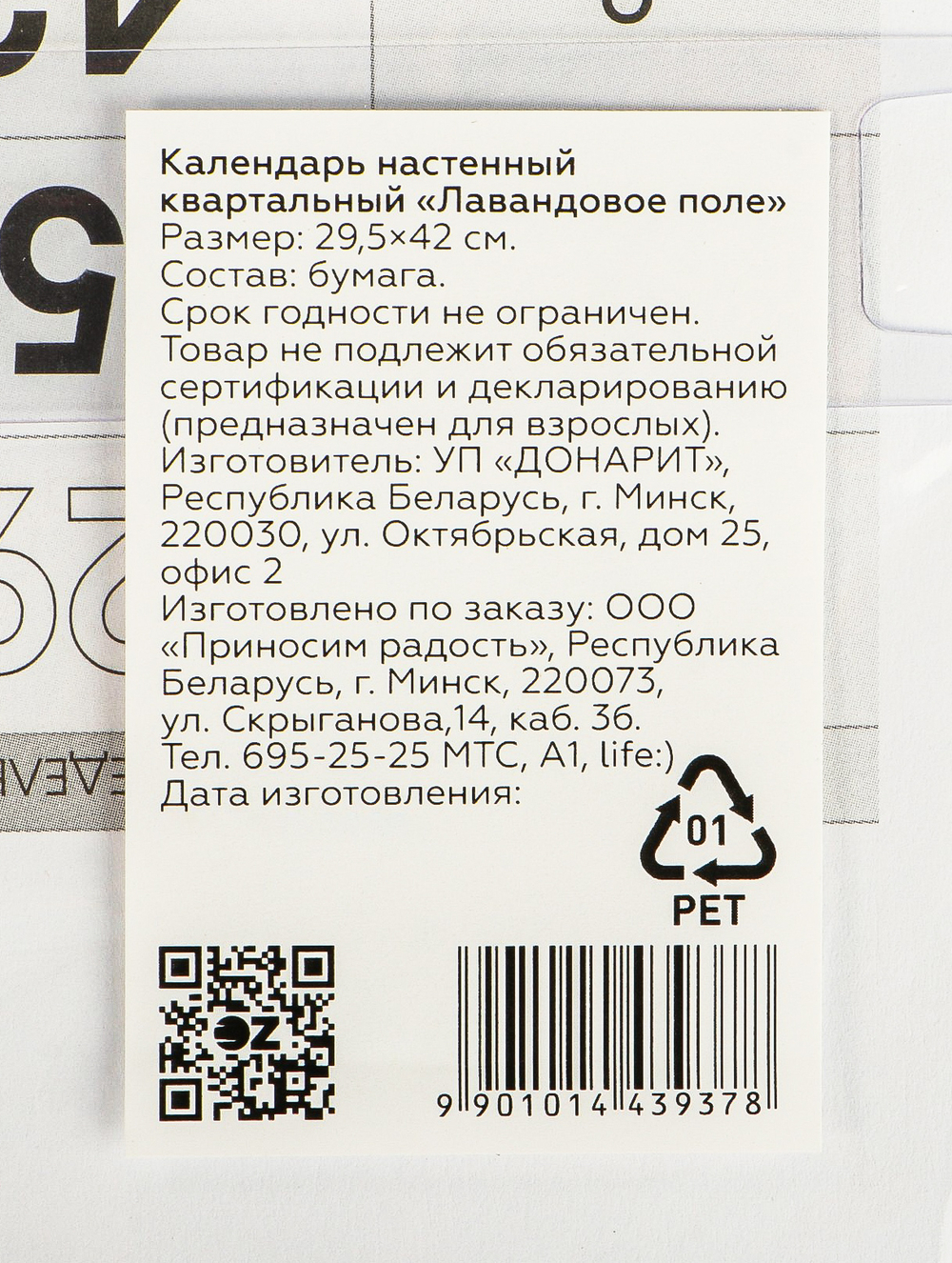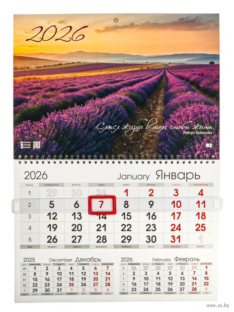 Календарь настенный односекционный "Лавандовое поле" на 2026 год с белорусскими праздниками.