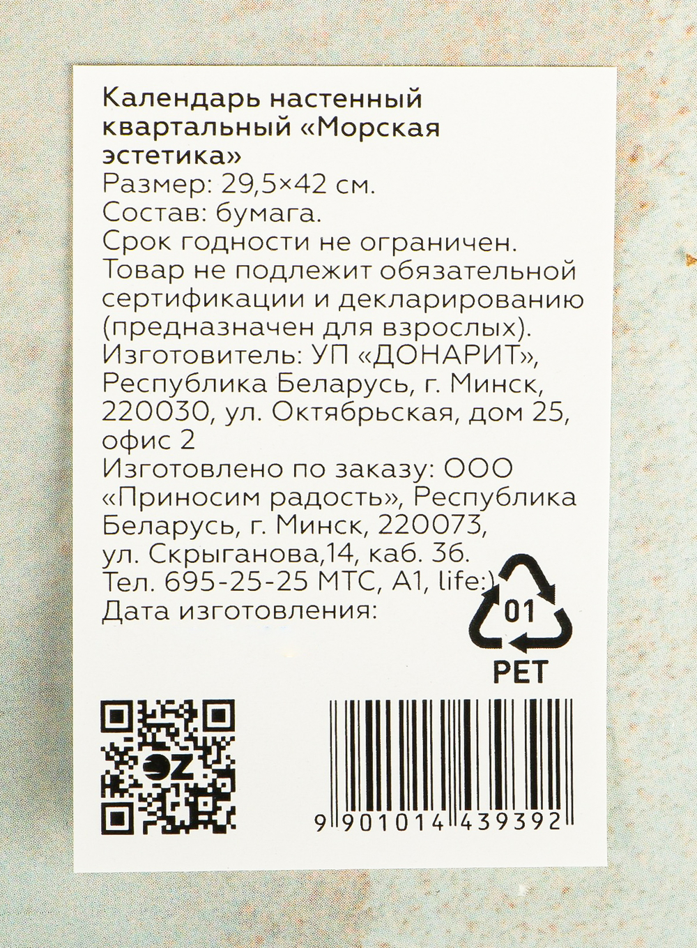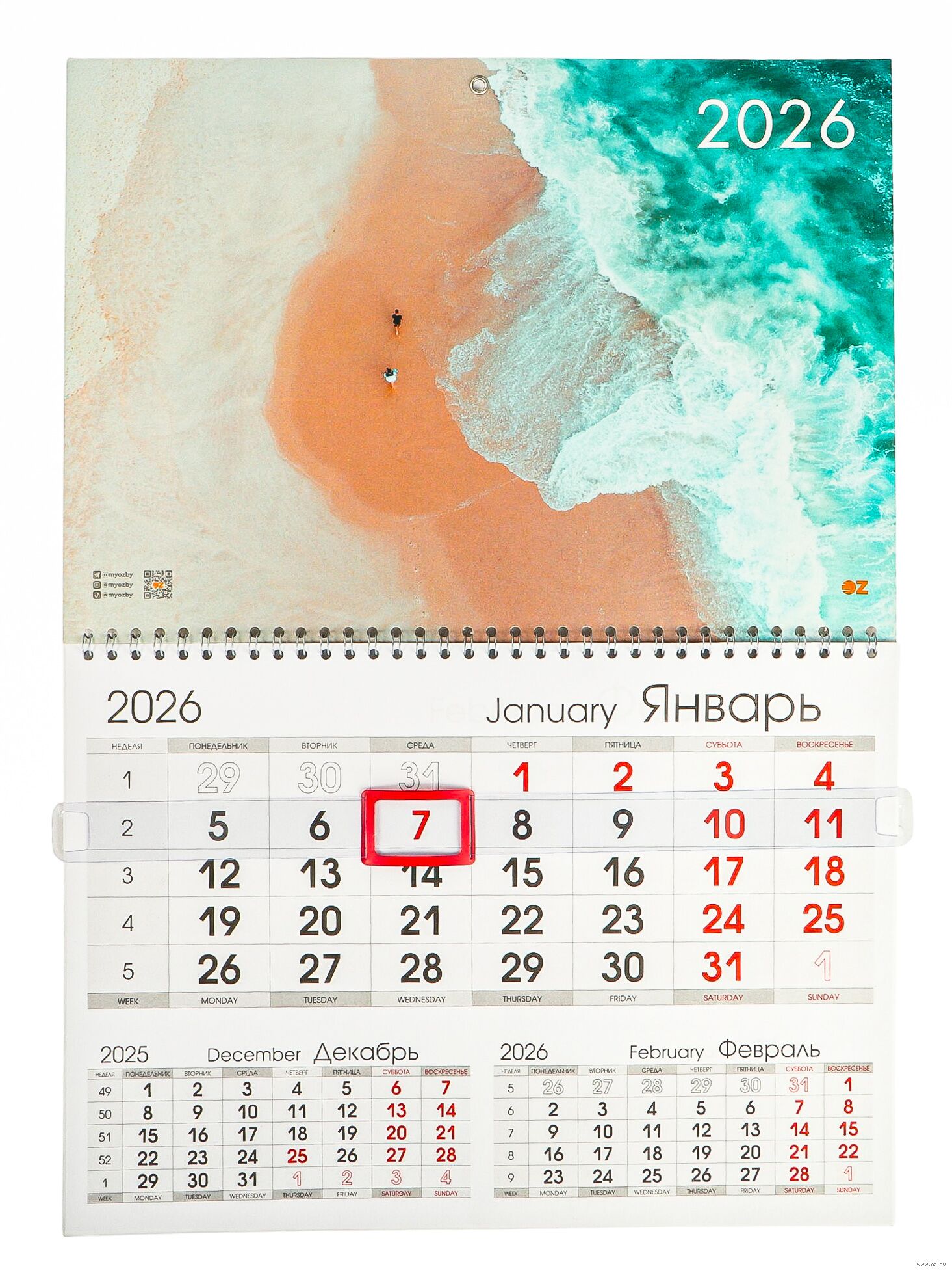 Календарь настенный односекционный "Морская эстетика" на 2026 год с белорусскими праздниками.