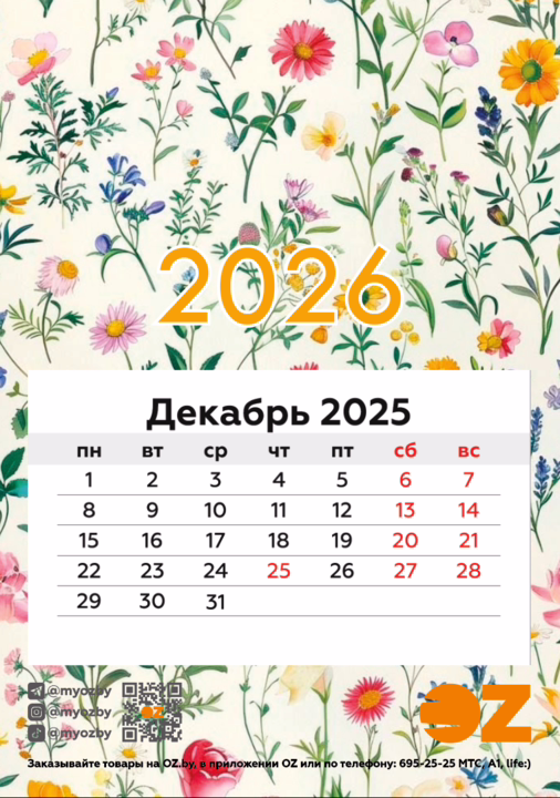 Календарь на магните на 2026 год "Дачные цветы" (9,5х13,5 см)