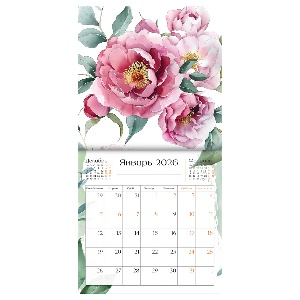 Каждый из 12 месяцев оформлен уникальными иллюстрациями, что создаёт вдохновляющую атмосферу. Оптимальный размер календаря позволяет легко разместить его в любом помещении, а надежная скрепка обеспечивает простоту в использовании. Индивидуальная упаковка – пакет.