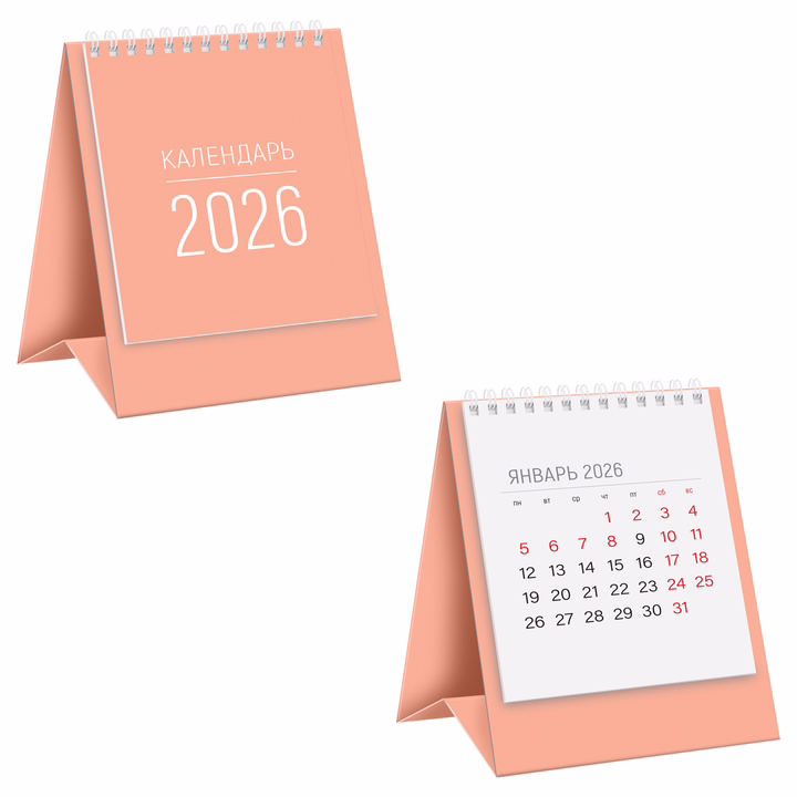 Календарь настольный перекидной "Peach" на 2026 год – незаменимая вещь на рабочем столе и отличный помощник для офиса. Размер горизонтального календаря – 80х110 мм, тип скрепления – гребень/спираль.
