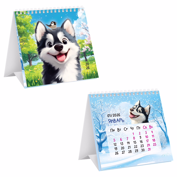 Календарь настольный на 2026 год "Радостный хаски" (10х10 см)