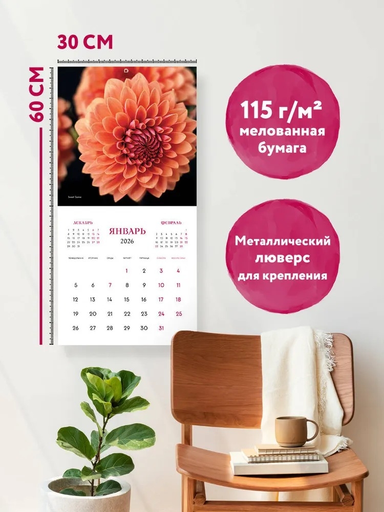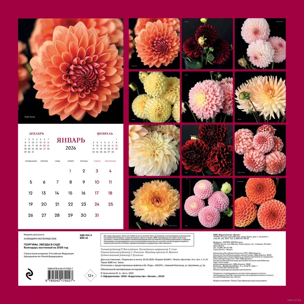 Календарь настенный на 2026 год "Георгины. Звезды в саду" (30х30 см)