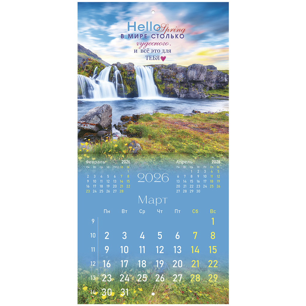 Настенный календарь на скрепке, содержит 12 страниц. Яркая, красочная картинка дополнена календарной сеткой на месяц. Блок календаря напечатан на мелованной бумаге плотностью 130 г/м2. Оригинальная обложка изготовлена из мелованной бумаги плотностью 230 г/м2. Размер – 21,4х21,4 см, в развороте – 21,4х42,8 см. Дополнен отверстием для удобства крепления. Поставляется в индивидуальной упаковке (полибэг) с европодвесом и прокладкой из гофрокартона, что создает товару дополнительную защиту.
