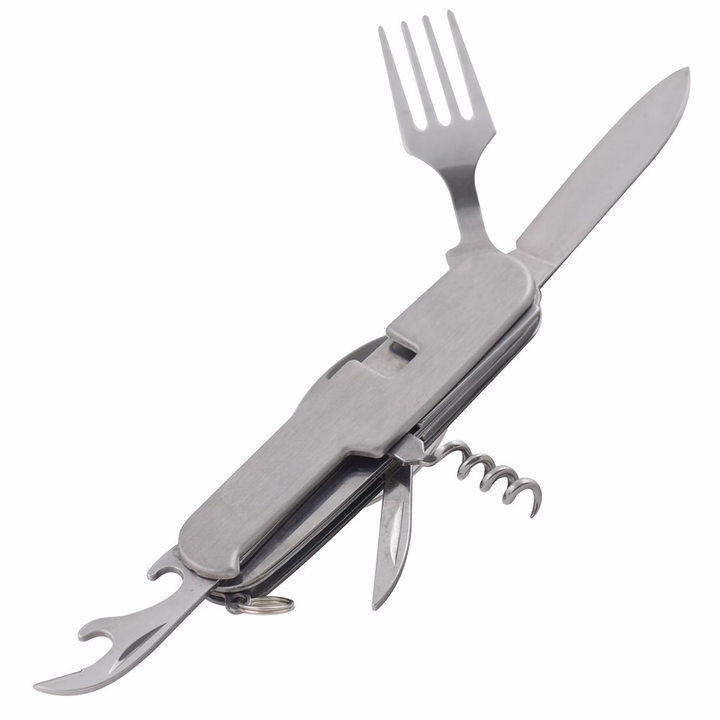 Помимо традиционных функций: нож, открывалка для бутылок и штопор – вам предлагаются такие предметы как шило, ложка и вилка.