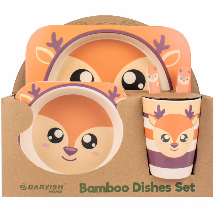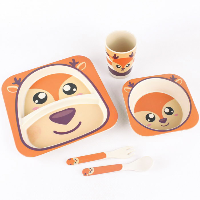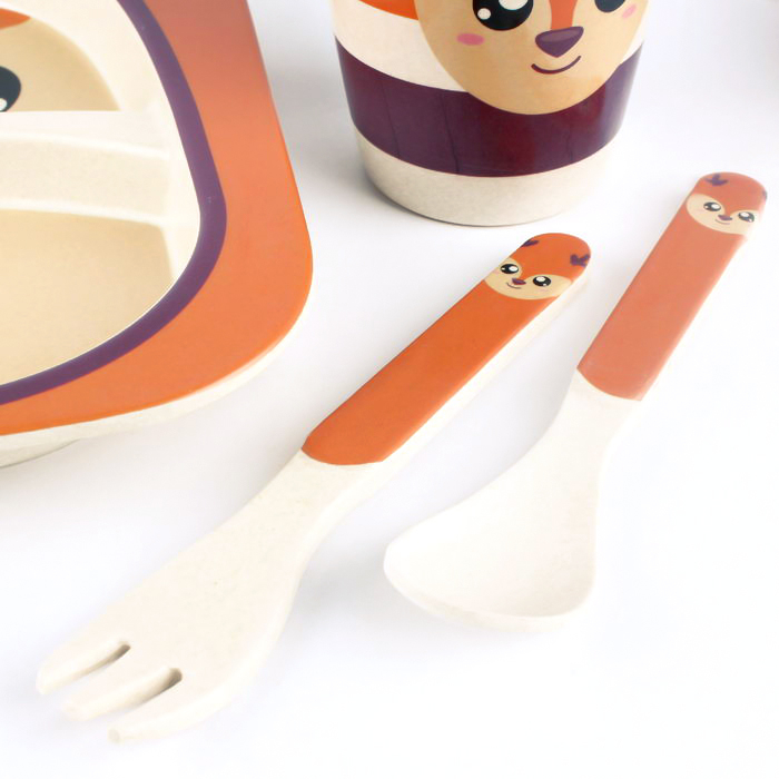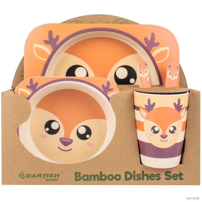 Посуда бамбуковая 5 предметов в наборе. Посуда безопасна для использования, сделана из экологически чистого бамбукового волокна с нанесением ярких красивых рисунков.