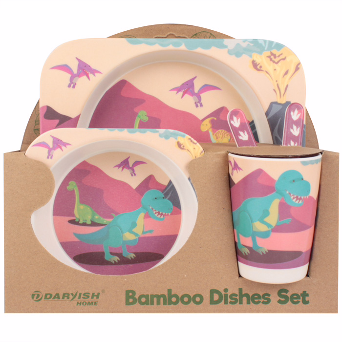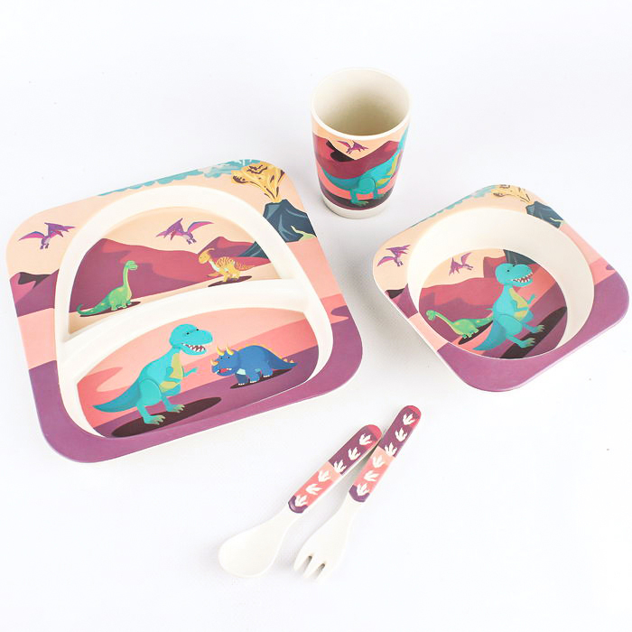 Посуда бамбуковая 5 предметов в наборе. Посуда безопасна для использования, сделана из экологически чистого бамбукового волокна с нанесением ярких красивых рисунков.