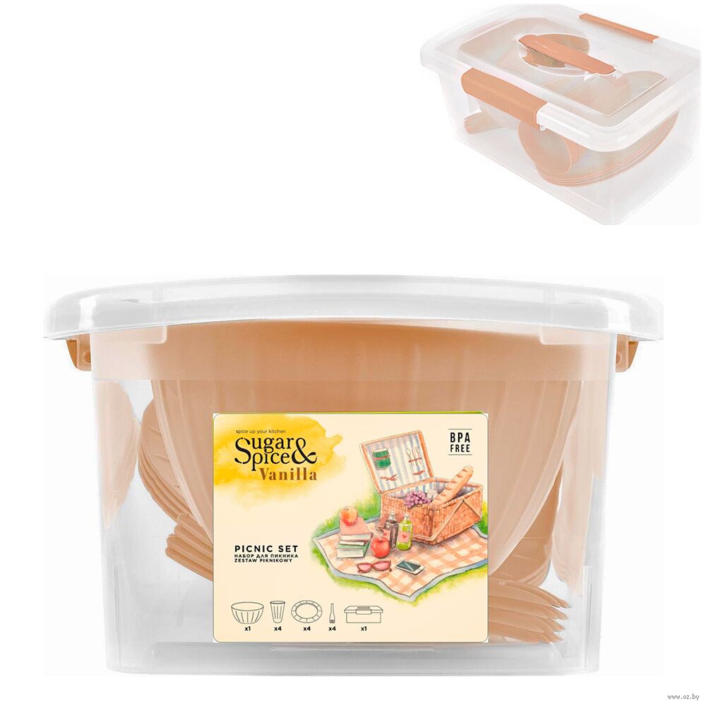 Набор для пикника "Sugar and Spice" рассчитан на организацию отдыха на открытом воздухе. Удобный и стильный набор посуды для пикника на 4 персоны незаменимая вещь в поездке за город. Вся посуда свободно помещается в контейнер, который имеет ручку для удобства переноски.