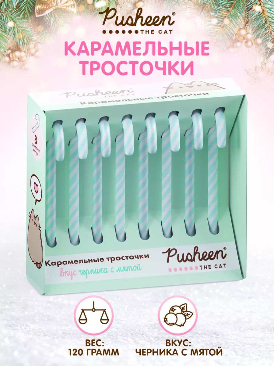 Карамельные тросточки "Pusheen" 8 штук в упаковке со вкусом черника-мята. Карамельные трости уже давно стали неотъемлемым атрибутом праздников.