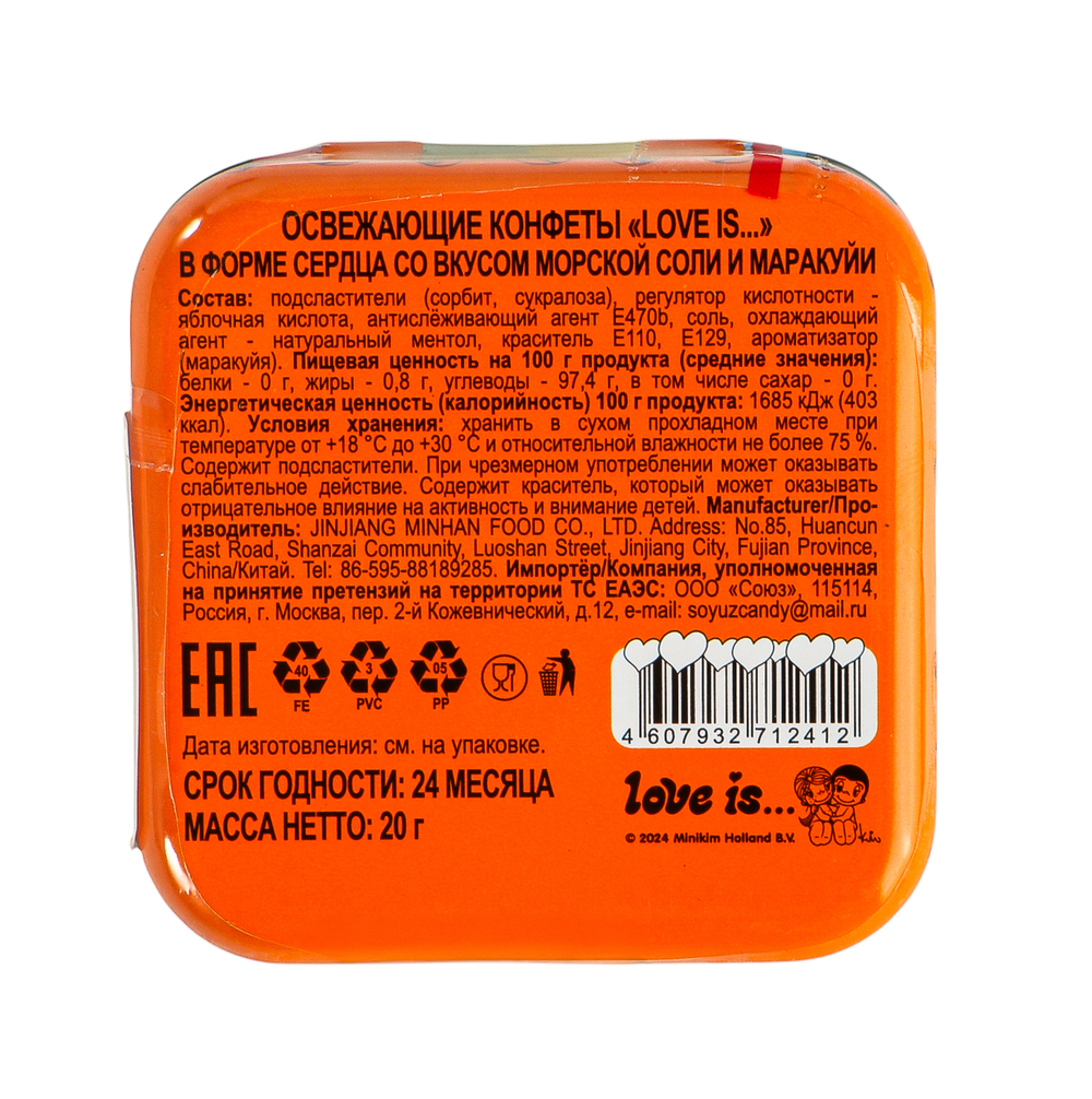 Освежающие конфеты "Love is...." в форме сердца со вкусом морской соли и маракуйи.