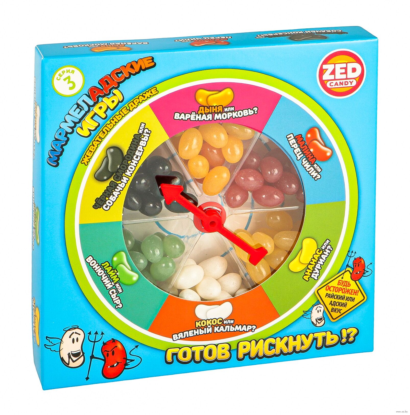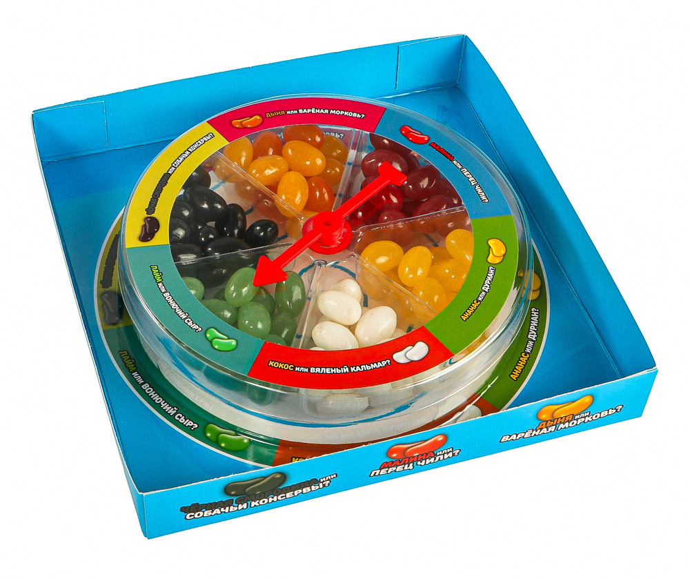 Игроки по очереди вращают стрелочку и берут боб выпавшего цвета, затем едят, не зная, что их ждет. Проигрывает тот, кому попался "адский" вкус, и игрок не смог его съесть.