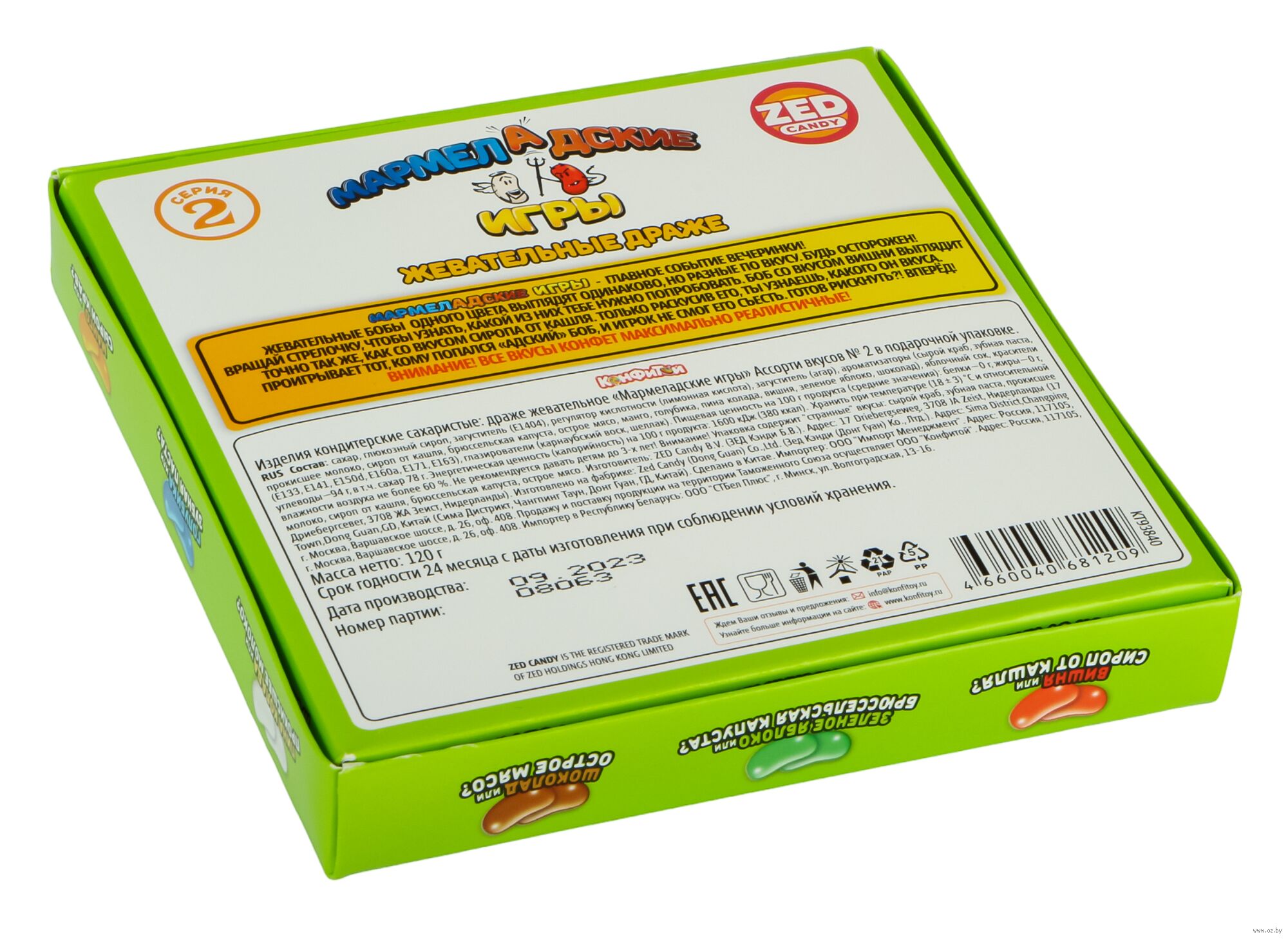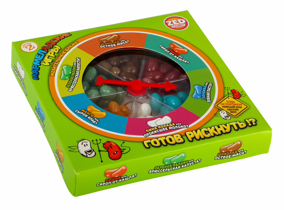 Подарочный набор "Мармеладские игры 2. Готов рискнуть?" с жевательными бобами отлично подойдет для шумных и весёлых компаний, которые любят проводить время за оригинальными и увлекательными играми. Это не простые разноцветные драже, они с сюрпризом внутри. Никогда не знаешь, какой попадется вкус, приятный или отвратительный, вкусный или тошнотворный.